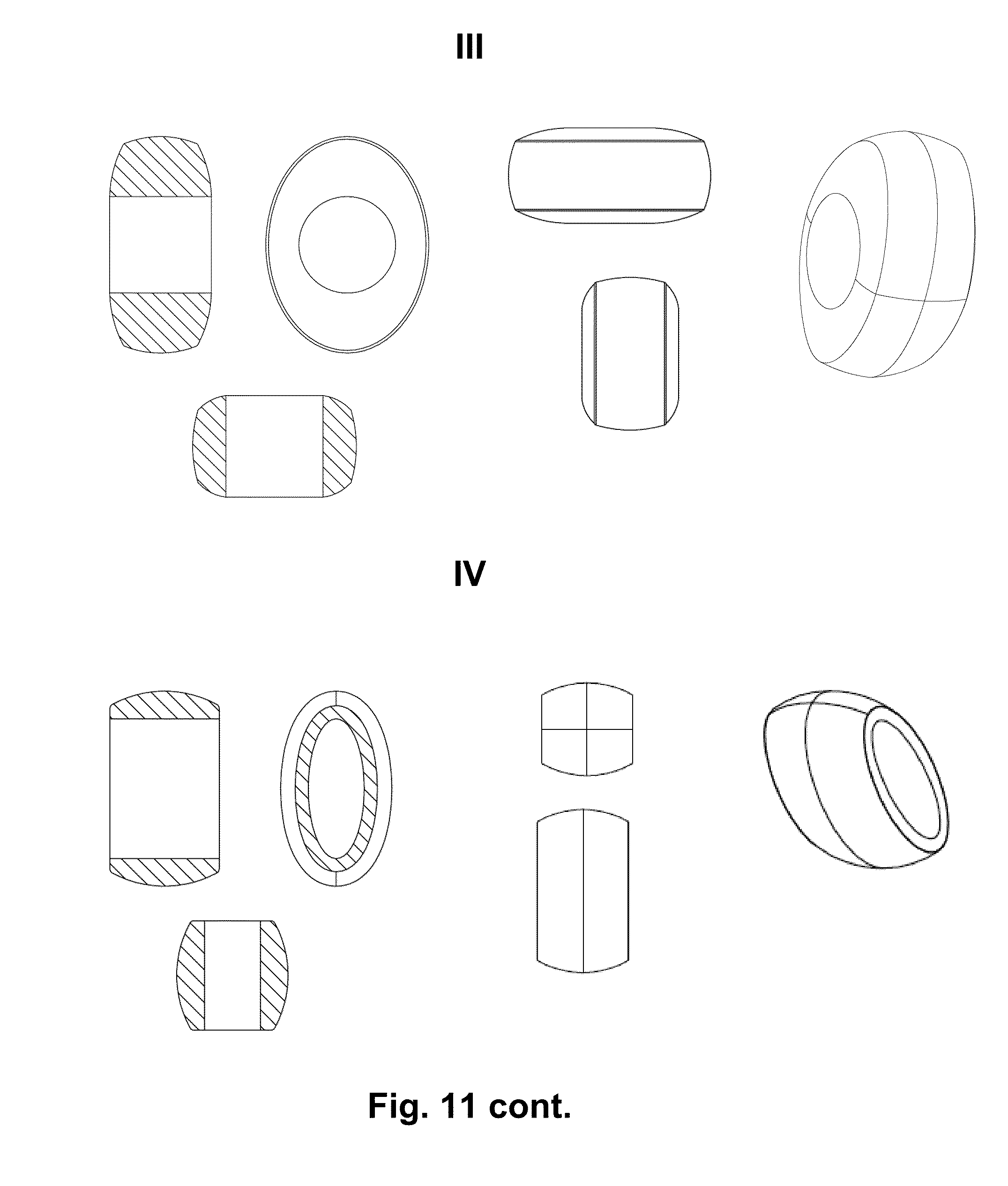 12) Protraction index (AUC0-24h/24 h)/Cmaxwas calculated for each individual with regard to the hydrocodone concentration profile Numerical data was presented in summary tables by number of subjects, arithmetic mean (geometric mean and CV where applicable), median, standard deviation, minimum and maximum. Categorical data is presented by number and percent of subjects as well as number events (where applicable). All calculations of endpoints, analyses and presentation of endpoints were carried out in SAS version 9.1 (Statistical Analysis System) or later versions. Analysis datasets were derived from the study data and was adhere to the CDISC ADaM standard (Clinical Data Interchange Standard Consortium Analysis Data Model). For the oxycodone AUC0-48, AUC0-inf, and Cmaxprimary PK parameters, the ratio between test treatments A, B, and C compared to treatment D (reference) were, after log transformation, estimated in a mixed linear model as Where treatment (A, B, C, or D) and period were fixed effects and subject was a random effect. The estimation included all valid PK data from all treatments for each comparison. Treatment sequence was included as a fixed effect in the above model. The ratios of means (A/D, B/D, and C/D) were calculated with 90% geometric confidence intervals based on least squares means. The treatment difference and corresponding confidence interval were back-transformed, thus yielding ratio estimates. Hence, the CI was evaluated against the range (0.80; 1.25). Other endpoints were tabulated. 28 subjects were screened for this study and upon completion of all screening procedures a total of 16 healthy, adult non-smokers were enrolled in the study, of which 9 completed all treatment groups. The protraction index was determined, and the data below in table 10 are derived from the oxycodone concentration profile obtained in the individuals, which participated in this study. No severe, significant, or serious adverse events were reported during the study. The most frequently occurring adverse events were expected or procedure-related and were mild or moderate in intensity From, the descriptive summaries of AUC(0-48)and AUC(0-inf)in Table 8 and 9, it was clear that the reference group had similar values of AUC(0-48)and AUC(0-inf)compared to the values for the test tablets. Cmaxdecreased with increasing size of the tablets. The pattern was repeated for the metabolites noroxycodone and oxymorphone. The elimination rate was almost the same for all four treatment groups. Mean MRT increased with increasing size of the tablet, with the reference group matching the 6.0 mm group. The mean proportion of AUC(0-Tmax)decreased with increasing size of the tablet, as with AUC0-48and Cmax. The ratio for Cmaxshowed a decreasing trend with increasing size of tablets. It was indicated that the 6.0 mm tablet was closest to the reference tablet, as the 90% confidence intervals for Cmaxwere 79.0-95.8 and that the 9.0 mm tablet had the most sustained profile, with a potential for QD (once daily) dosing. The individual steady state data in the time interval [0 h, 24 h] were estimated as a sum of two components a) the sample values in the [0 h, 24 h] interval and b) estimated tail values in the interval [24 h, infinity], for example the estimated value at 1 hour on day 2, 3, 4 etc. This corresponds to the superimposition principle. The tail was assumed to follow the standard one-compartment elimination (i.e. exponential function), and was estimated based on sample data from 24-48 hours for Oxycodone and derivatives. From The individual steady state data [0 h, 24 h] is estimated as sum of observed data in the [0 h, 24 h] interval and estimated tail values [24 h, infinity]. Peak and trough were derived from these individual steady state data. The tails were estimated by standard one-compartment terminal elimination approach. The pattern of increasing Trough/Cmaxratio with increasing length for mean oxycodone plasma concentrations is similar for the active metabolites mean noroxycodone and mean oxymorphone plasma. The curve demonstrates that the pharmaceutical compositions prepared as described herein facilitate controlled delivery of active drug substances and that the geometry of such compositions can be adjusted to achieve desired, prolonged release of drug suited to once daily dosing. It is commonly known that enterohepatic cycling causes a multiple peak phenomenon in the concentration-time profiles. Oxycodone does not show enterohepatic cycling. The tablets formulated and used in the Examples are a combination of a matrix polymer system and a water-impermeable, essentially non-erodible shell (coating) partly covering this matrix. The active drug substance is dispersed and/or dissolved in the matrix. The active drug substance is released substantially by surface erosion. The erosion of the matrix occurs when water diffuses into the matrix at a constant rate, leading to polymer hydration, swelling, disentanglement and dissolution. A cylindrical shaped shell (coating) with a well defined surface area in both ends of the tablet leads to constant dissolution because of a constant release area. Accordingly, a zero-order release mechanism can be obtained. The shell (coating) can formulated such that it is slowly degradable and passes substantially (or entirely) intact through the GI tract and is excreted with feces. For tablets of a given length, extended release over a pre-defined period of time can be achieved, and as illustrated by the examples provided herein, in certain embodiments, tablets with a length in a range selected from a range of 8 to 10 mm and a range of 9 mm to 9.5 mm can be formulated to provide in vivo efficacy for 24 hours. By varying the size of the tablet and the thickness of the shell (coating), and thereby the matrix weight and size of the erosion area controlled release properties can by varied. Thus, the release area can be adjusted to alter the rate of which drug is released, a