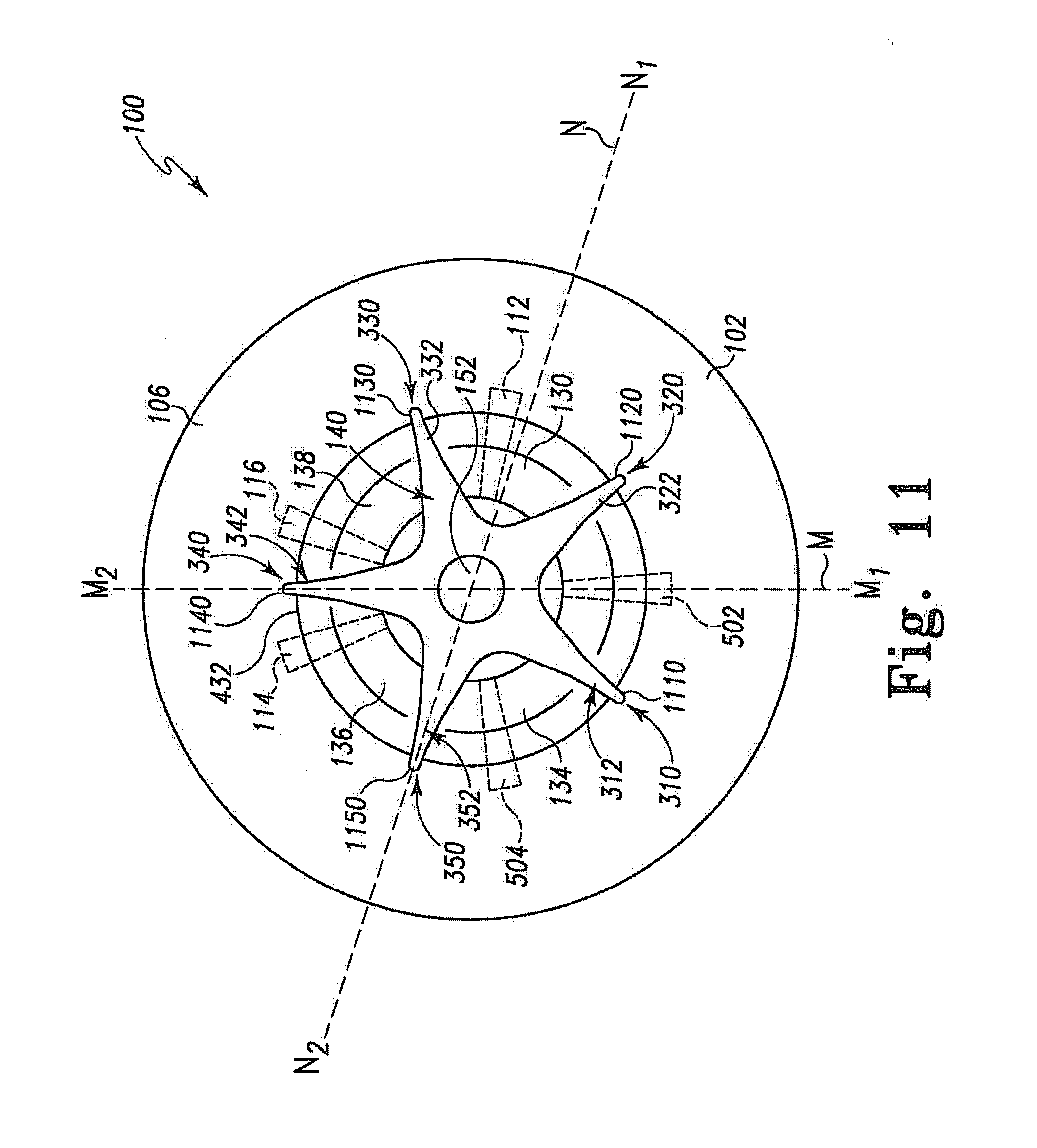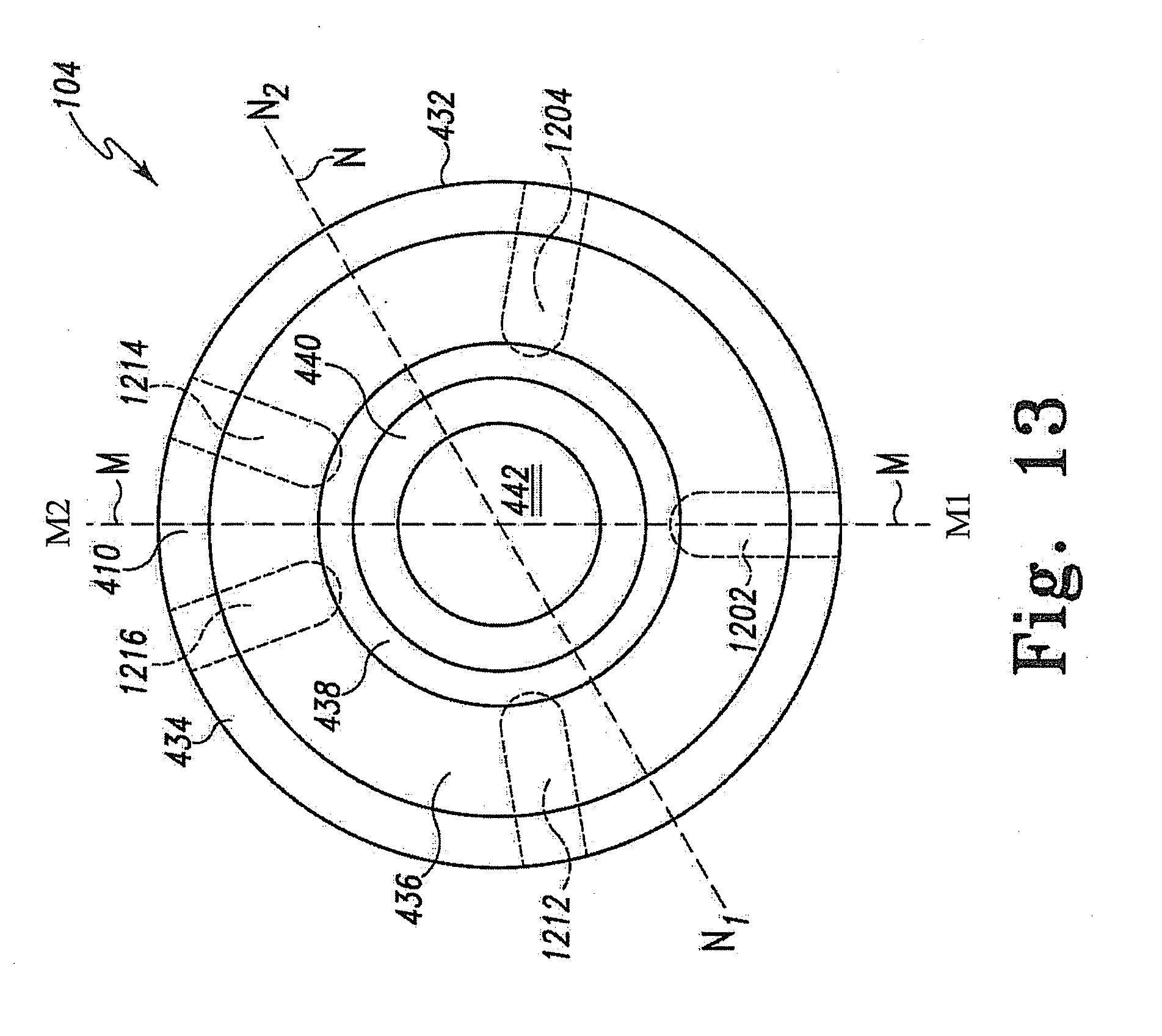 58. The apparatus of claim 54, where the interiorly located vertices further comprise a first interiorly located vertex located a first distance from the central point of the orifice, and a second interiorly located vertex located at a second distance from the central point of the orifice, different than the first distance.