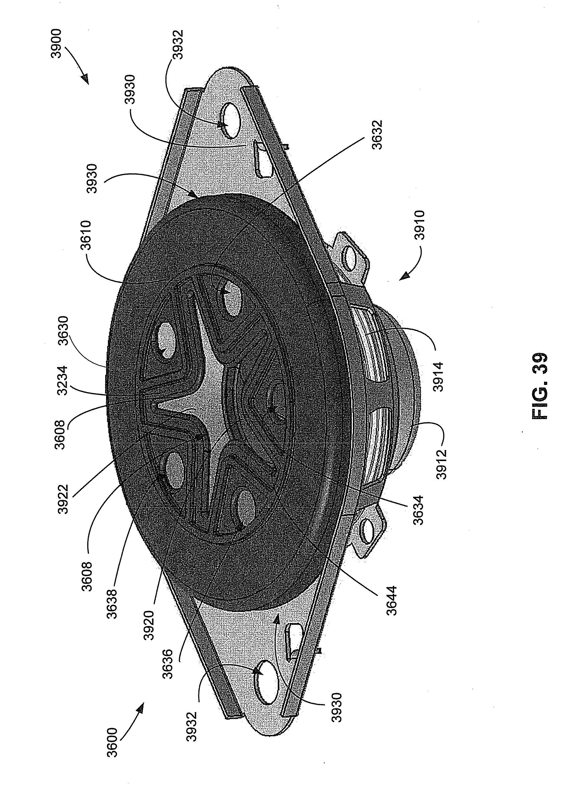 The supplementary apertures, the auxiliary apertures, or vents 4630, 4632, 4634, 4636, and 4638 may be arranged to define a border, where the border further defines a shape. The border of each of the supplementary apertures, the auxiliary apertures, or vents 4630, 4632, 4634, 4636, and 4638 may define a triangular shape, a star-like shape, an etoile shape, an estoile shape, a circular shape, and/or an elliptical shape. As an example, supplemental aperture 4630 may include a star-like shape. Auxiliary apertures 4632, 4634, 4636, and 4638 may include a circular shape.