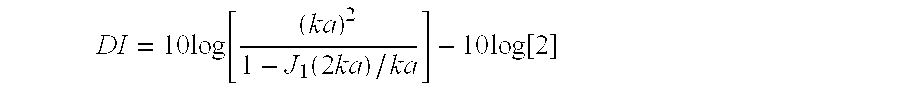 DI=10log[(ka)21-J1(2ka)/ka]-10log[2]