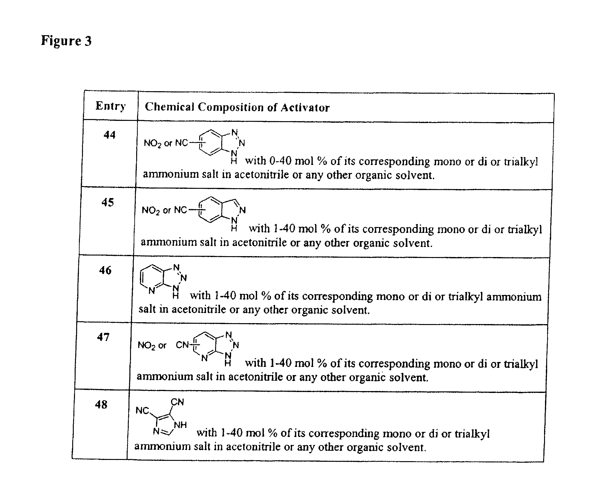 Oligonucleotide Synthesis Using Phosphoramidite Activators 35-48 (see FIGS. 1-3)