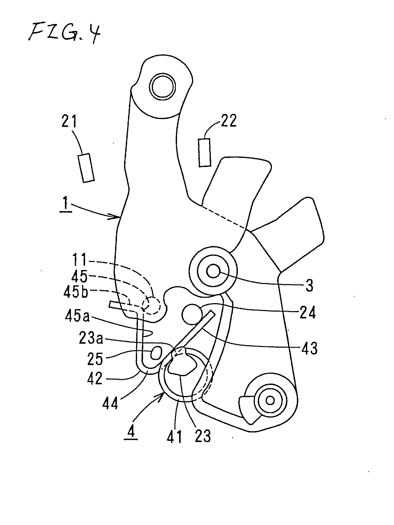 a support portion, which is projected from the base member, and which is set up in a direction in which the engagement projecting portion of the rotating lever approaches when the rotating lever rotates from the second position to the first position; and a spring stopper portion, wherein the coil portion is supported around the support portion, wherein the first arm extends along a traveling locus of the engagement projecting portion along which the engagement projecting portion travels as the rotating lever rotates, wherein the first arm comprises a projecting portion, along which the engagement projecting portion slides in association with rotation of the rotating lever, and which configured to: