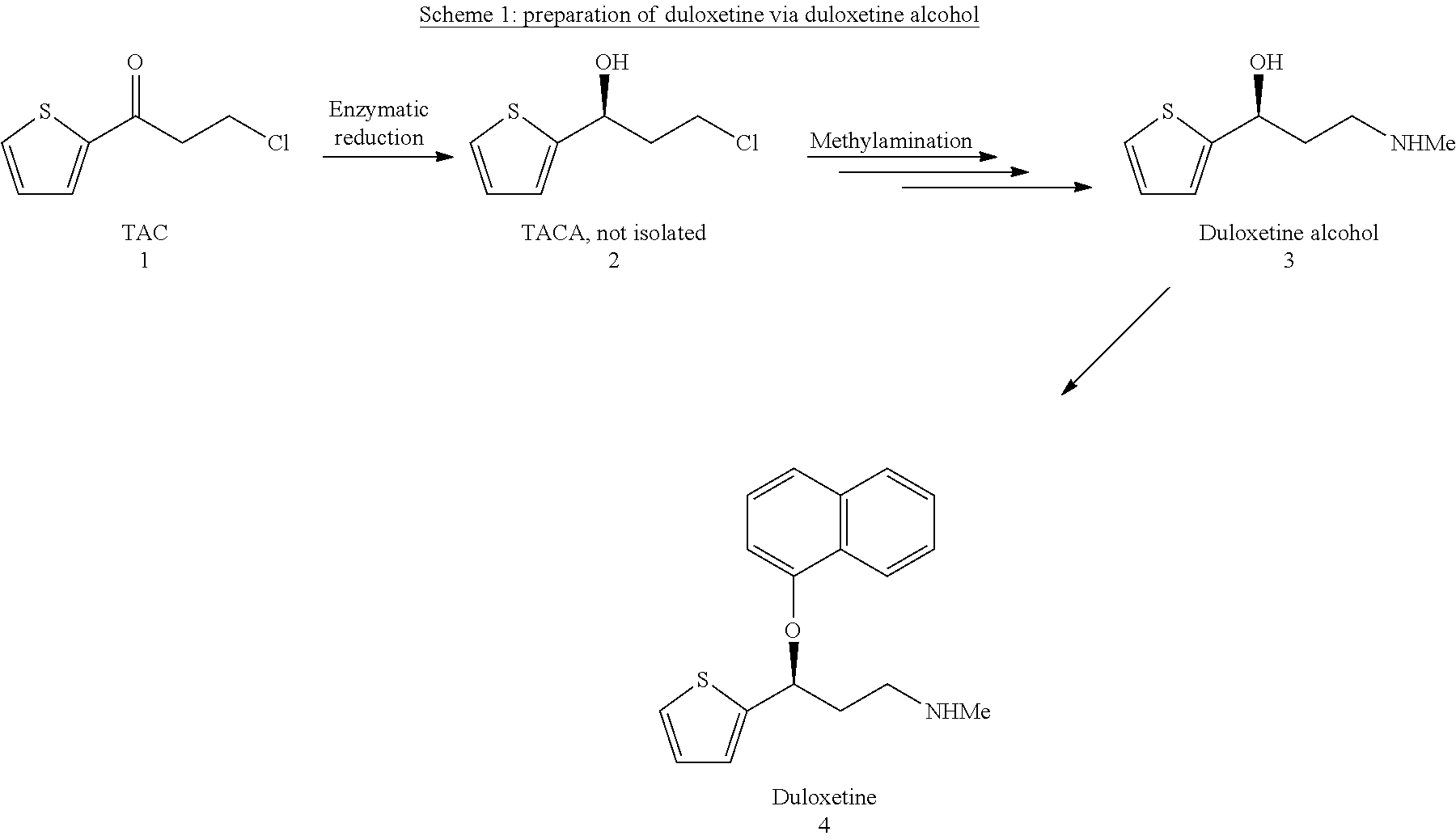 (a) biocatalytically reducing 3-chloro-1-(thienyl-2-yl)-propan-1-one (1) to (1S)-3-chloro-1-(thienyl-2-yl)-propan-1-ol (2)