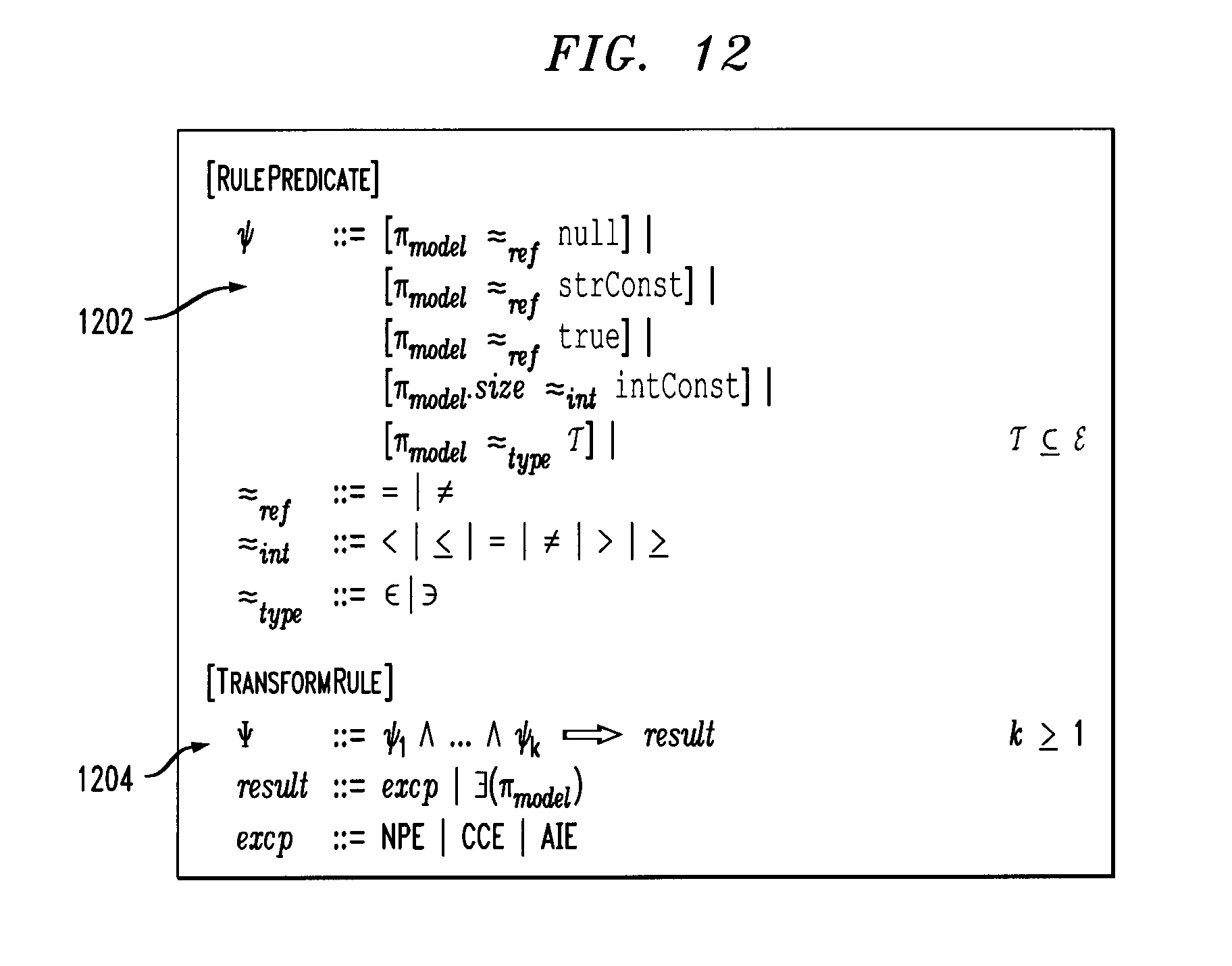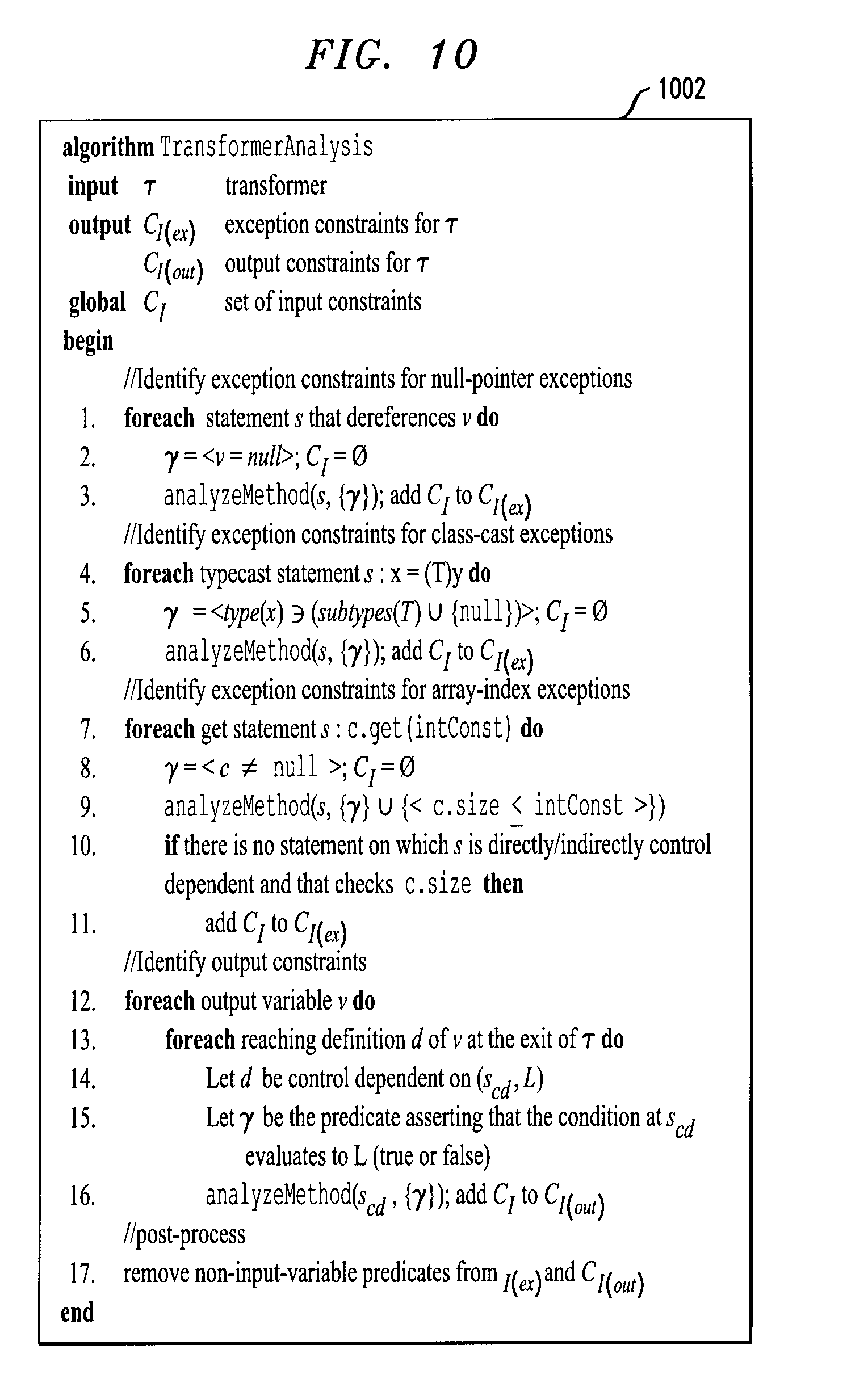 DEFINITION 6: (Code access path) A code access path is a sequence of dereferences v1.v2. . . .vk, k≧1, where vi, 1≦i<k, is a reference variable or a method that returns a reference type, and vkis a method, a reference, an integer, or a Boolean variable. For vi=m(x1, . . . , xj),j≧0, each xiis a code access path.