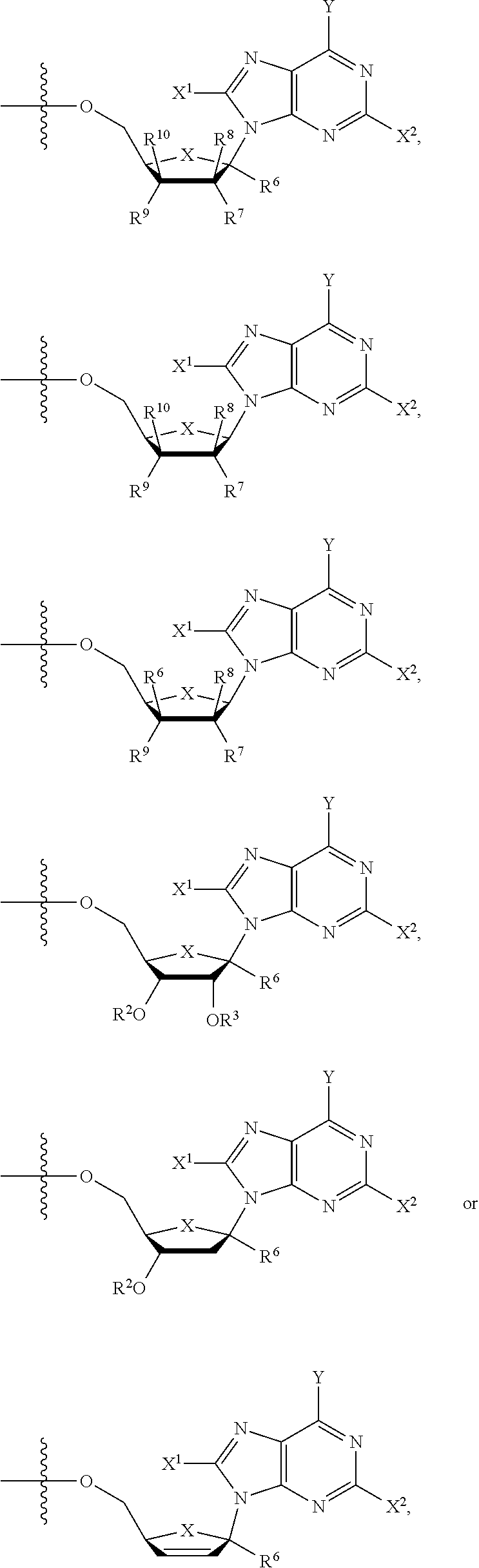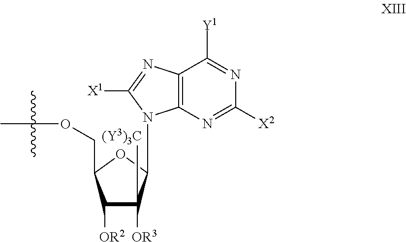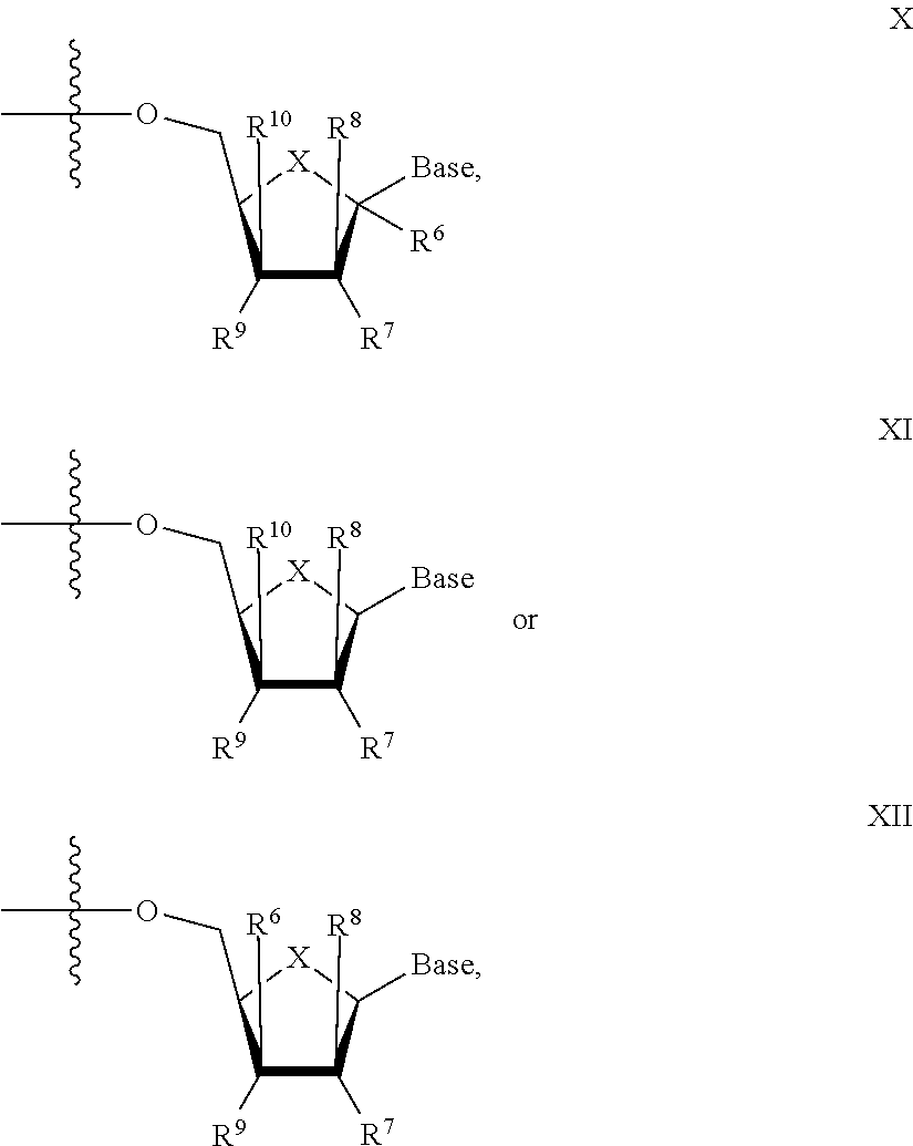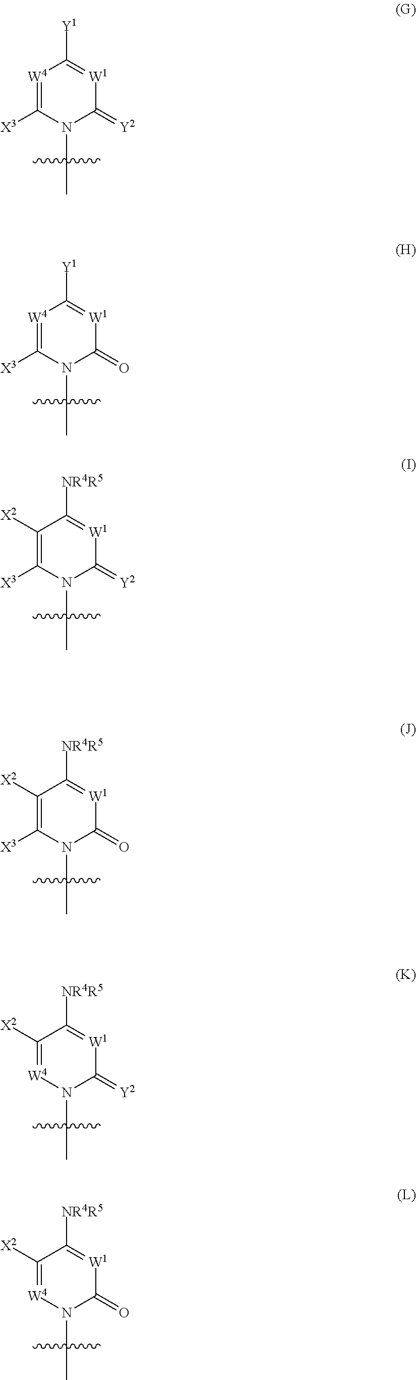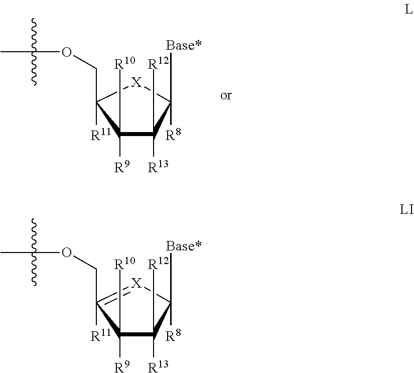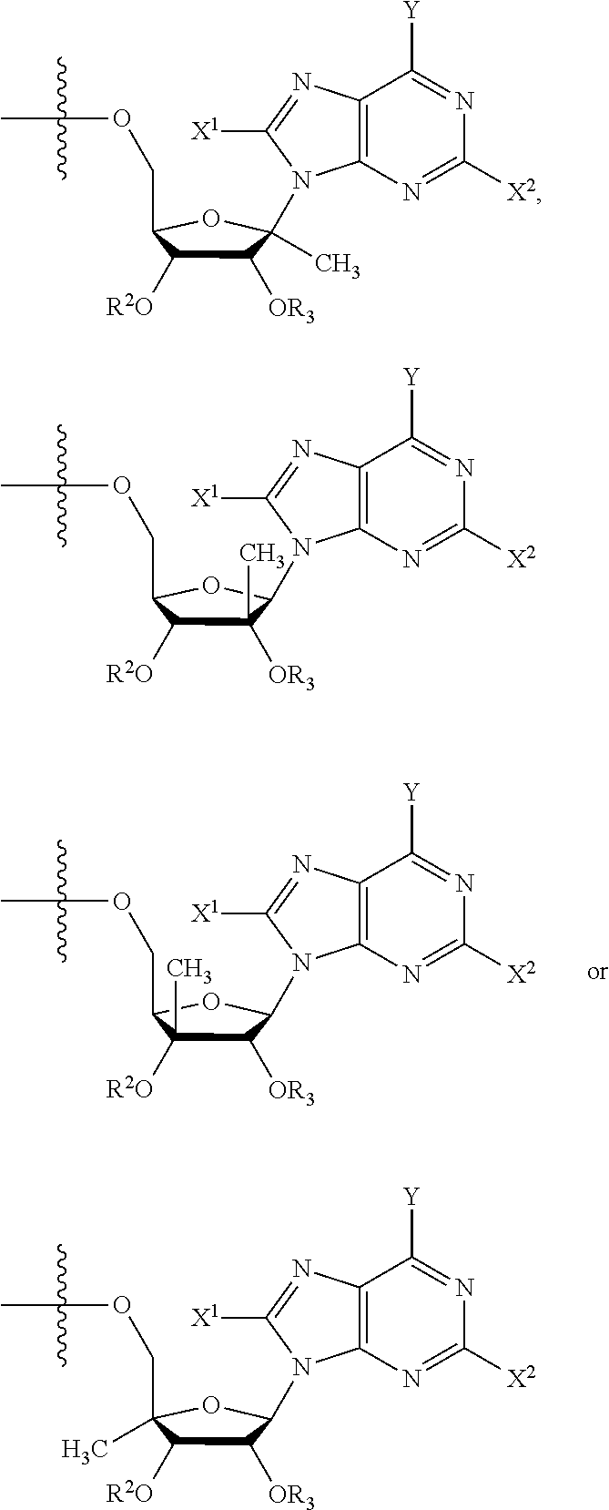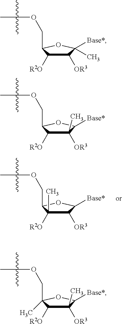HCV ELISA 2 Compound Reference Structure EC50(μM) CC50(μM) NUCLEOSIDE PARENT: A634 (NM107) ++ + EXAMPLE 2: B102 ++ + EXAMPLE 26: B187 ++ + EXAMPLE 27: B399 ++ + EXAMPLE 28: B204 ++ + EXAMPLE 29: B244 + + EXAMPLE 30: B308 ++ + EXAMPLE 31: B353 + + EXAMPLE 32: B354 ++ + EXAMPLE 33: B391 + + EXAMPLE 34: B395 ++ + EXAMPLE 24: B234 ++ + EXAMPLE 23: B302 ++ + EXAMPLE 22: B390 + + EXAMPLE 25: B183 + + NUCLEOSIDE PARENT: A844 (NM108) ++ + EXAMPLE 3: B299 +++ + EXAMPLE 11: B242 +++ + EXAMPLE 10: B307 +++ + NUCLEOSIDE PARENT: A374 (NM80) +++ ++ EXAMPLE 6: B263 ++ + NUCLEOSIDE PARENT: C809 (NM106) + + EXAMPLE 7: B229 ++ + NUCLEOSIDE PARENT: A608 + + EXAMPLE 8: B186 ++ + NUCLEOSIDE PARENT: A849 +++ + EXAMPLE 9: B396 +++ ++ NUCLEOSIDE PARENT: D961 + + EXAMPLE 12: B503 ++ + NUCLEOSIDE PARENT: E810 +++ + EXAMPLE 18: B436 ++ + EC50in ELISA 2 assay is provided as follows: +++ ≦1 μm, ++ >1-10 μm and + >10 μm CC50is provided as follows: ++ ≦75 μm, + >75 μm Example 40