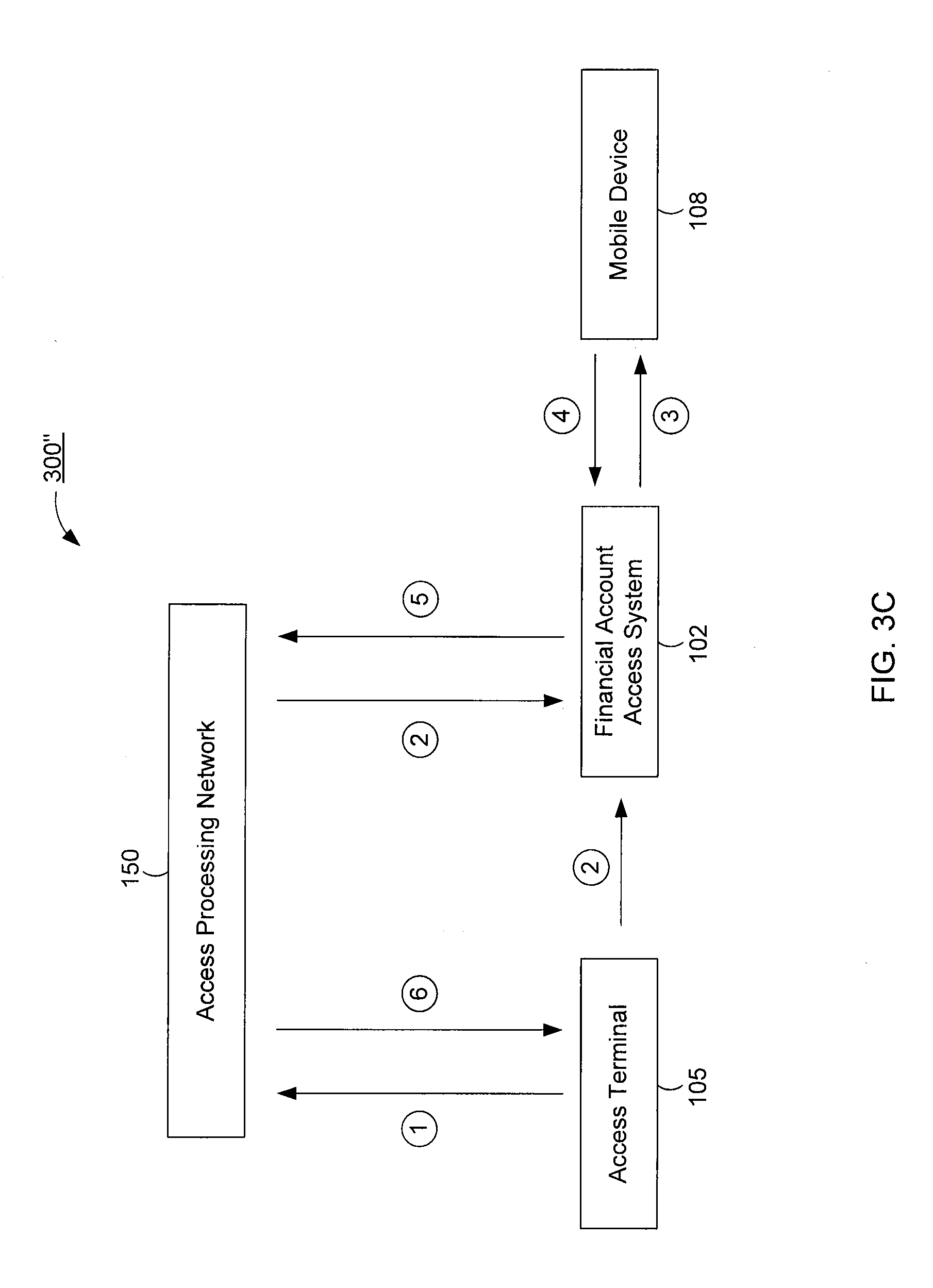 i) an incentive for executing a transaction at the at least one access terminal, and ii) an authorization request; (e) receiving an identifier for the financial account, the financial account being used in a transaction at the at least one access terminal; (f) receiving a response to the authorization request; and (g) controlling access to the financial account based on the response to the authorization request. 14. The system of 15. The system of 16. The system of 17. The system of 18. The system of 19. A non-transitory computer-readable storage medium comprising a plurality of instructions which, when executed by one or more processors, causes the one or more processors to: