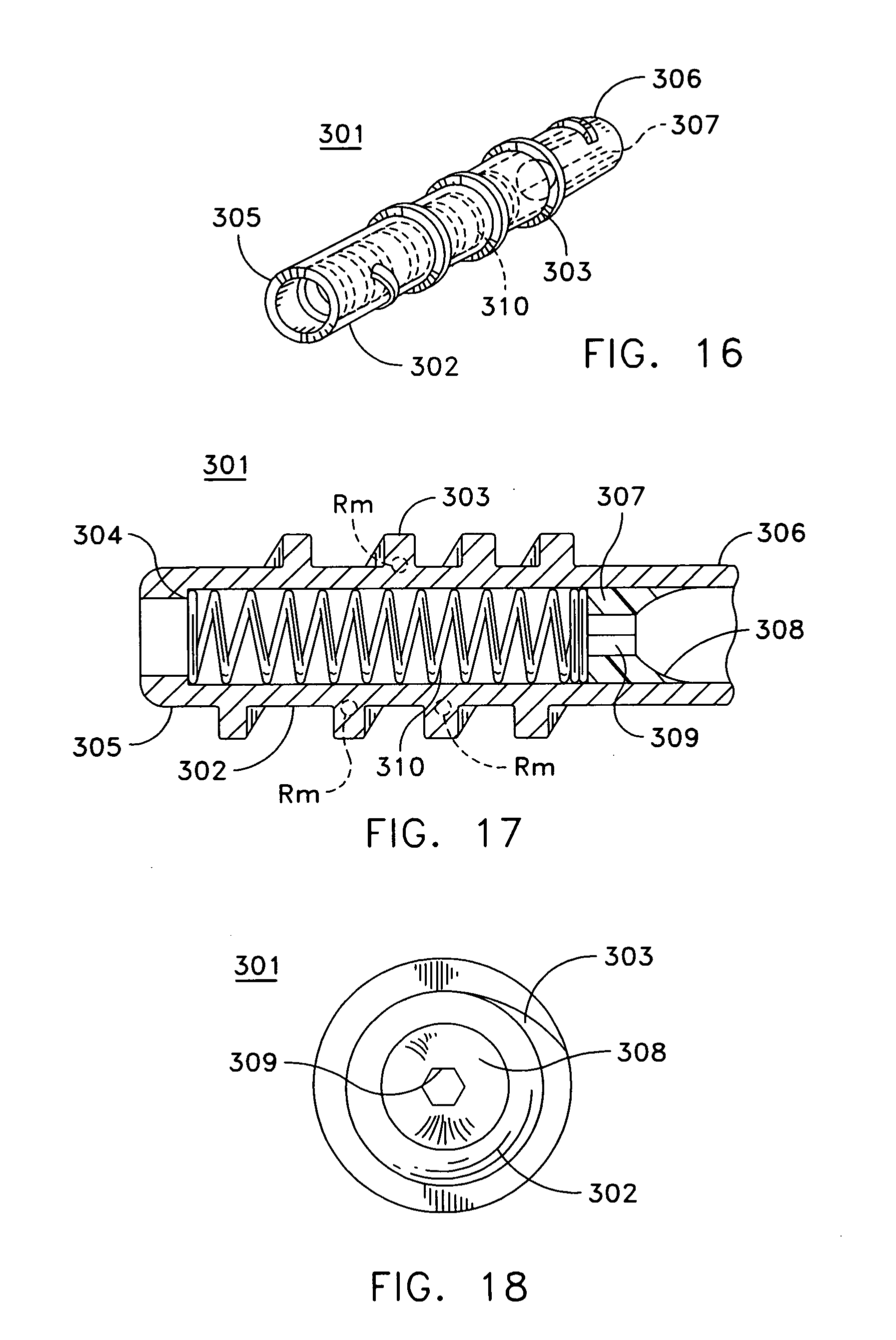a flexible tube having a distal end and a proximal end, a longitudinal axis extending between the distal end and the proximal end, and a lumen extending from the distal end to the proximal end, the lumen being sized to receive matter to be transported through the bodily passageway; and an external thread disposed over the distal end of the tube, the external thread having a sufficient structural integrity, and a sufficient surface profile, such that when the tube is disposed in a bodily passageway, rotation of the tube about the longitudinal axis will result in longitudinal motion of the tube along said bodily passageway. 2. Apparatus according to 3. Apparatus according to 4. Apparatus according to 5. Apparatus according to 6. Apparatus according to 7. Apparatus according to 8. Apparatus according to 9. Apparatus according to 10. Apparatus according to 11. Apparatus according to 12. Apparatus according to 13. Apparatus according to 14. Apparatus according to 15. Apparatus according to 16. Apparatus according to 17. Apparatus according to 18. Apparatus according to 19. Apparatus according to 20. Apparatus according to 21. Apparatus according to 22. Apparatus according to 23. Apparatus according to 24. Apparatus according to 25. Apparatus according to 26. Apparatus according to 27. Apparatus according to