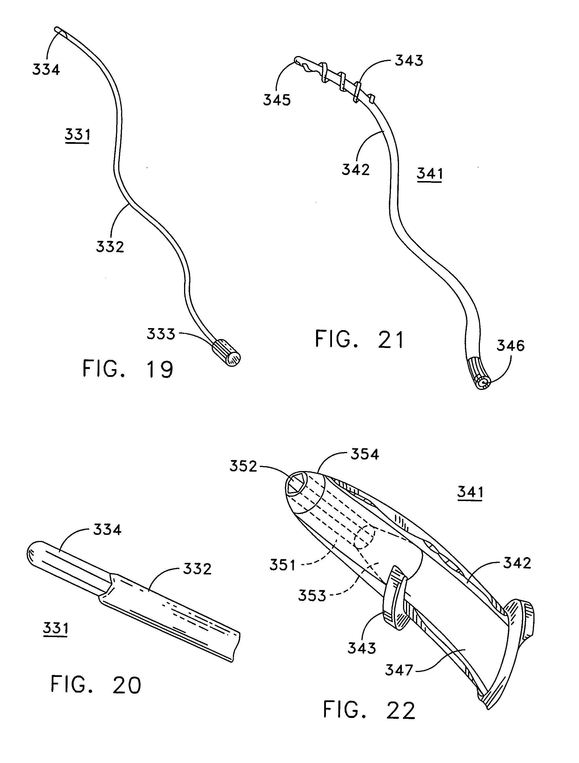 an elongated element having a distal end and a proximal end, and a longitudinal axis extending between said distal end and said proximal end; a therapeutic agent carried by elongated element; and an external thread disposed over said distal end of said elongated element, said external thread having a sufficient structural integrity, and a sufficient surface profile, such that when said elongated element is disposed in a bodily passageway, rotation of said elongated element about said longitudinal axis will result in longitudinal motion of said elongated element along said bodily passageway. 8. Apparatus according to 9. Apparatus according to 10. A conduit fitting for accessing a bodily conduit, said conduit fitting comprising: