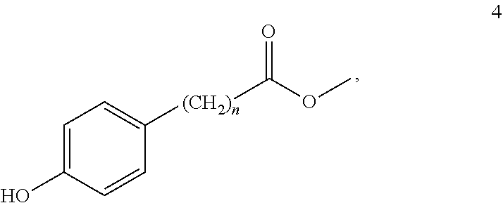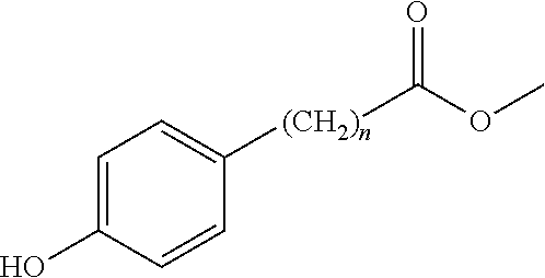 c) contacting the with of Pdic and EtOAc to yield 37. A method of synthesizing comprising: contacting Br—(CH2)n—COOH 1 with trimethylsilyl diazomethane and THF to yield Br—(CH2)n—COOCH32: contacting the Br—(CH2)n—COOCH32 with 4-benzyloxyphenylboronic acid, Pd(OAc)2, [HP(t-Bu)2Me]BF4, KOt-Bu and t-amyl alcohol to yield and contacting the with Pd/c, EtOAc, H2to yield wherein n is an integer from 10 to 24.