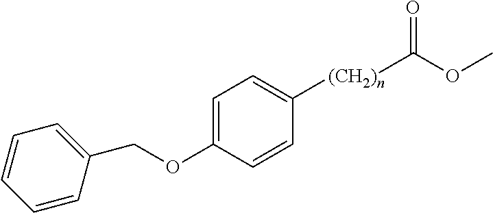 b) contacting the Br—(CH2)n—COOCH32 with 4-benzyloxyphenylboronic acid, Pd(OAc)2, [Hp(t-Bu)2Me]BF4, KOt-Bu and t-amyl alcohol to yield