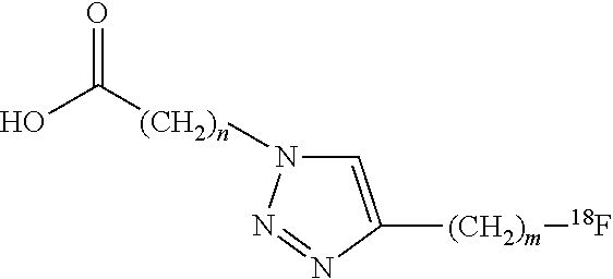 9. A fatty acid analog or salt thereof in accordance with aspect 1, wherein n=14, m=2 and X is18F.
