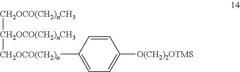 contacting the with TBAF, then Tf2O/CH2Cl2, then labeling, wherein n is an integer from 10 to 24. 47. A method in accordance with 48-51. (canceled) 52. A method of determining fatty acid distribution in an mammal, comprising: