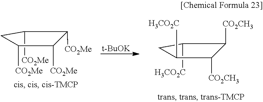 a second step of isomerizing in the presence of a base catalyst the compound represented by the formula [6] above, which was obtained in the first step, thereby giving trans,trans,trans-1,2,3,4-cyclopentanetetracarboxylic tetraalkyl ester represented by the formula [3]