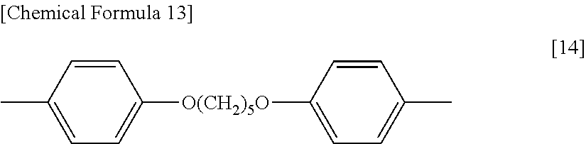 18. The polyamic acid as defined in claim 16, wherein said B is represented by the formula [14].