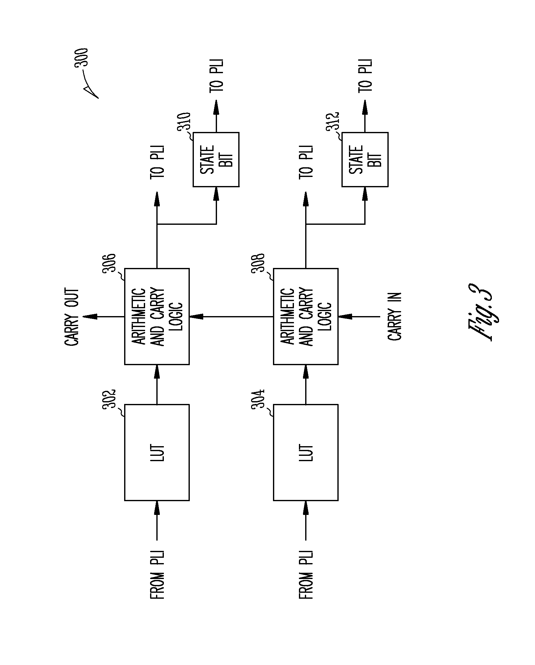 This application is a continuation of U.S. patent application Ser. No. 13/007,933, filed Jan. 17, 2011, which is a continuation of U.S. patent application Ser. No. 12/304,694, filed Dec. 12, 2008, now issued as U.S. Pat. No. 7,880,499, which is a U.S. National Stage Filing under 35 U.S.C. 371 from International Application No. PCT/US2007/072300, filed Jun. 27, 2007 and published in English as WO 2008/008629 A2 on Jan. 17, 2008, which claims the benefit of priority under 35 U.S.C. 119(e) to provisional application Ser. No. 60/817,552 filed on Jun. 28, 2006, which applications and publication are incorporated herein by reference in their entireties. The present invention relates to integrated circuits comprising reconfigurable logic fabrics and more specifically to a high performance reconfigurable logic fabric for deployment in integrated circuits including for example, field programmable gate arrays (FPGAs), application specific integrated circuits (ASICs) and other programmable logic devices where computational speed is a consideration in circuit design. The invention also relates to methods and apparatus for configuring high performance reconfigurable logic fabrics. Conventional reconfigurable logic fabrics rely on sequential arrangements of synchronous circuits embedded within the fabric. The presence of synchronous circuits arranged in sequence within the fabric limits the speed at which a logic fabric can perform logical operations. Each circuit in the sequence chain must wait at least one clock cycle to receive the results of the computation of the previous circuit in the chain. This delay limits the speed at which conventional reconfigurable logic fabrics can operate. The present inventors have recognized the need for reconfigurable logic fabrics capable of operating at faster speeds than can be obtained using conventional synchronous logic fabrics. Configuring conventional reconfigurable logic fabrics to comprise specific hardware circuit implementations is accomplished using off-line electronic design automation (EDA) tools. These tools presume the presence of synchronous circuits in the reconfigurable fabric. The present inventors have recognized the need for a reconfigurable logic fabric that is not only capable of faster computational speeds, but is also amenable to design using available EDA design tools. The invention provides reconfigurable logic fabrics and methods and systems for configuring reconfigurable logic fabrics. These and other objects, features and advantages of the invention will be apparent from a consideration of the following detailed description of the invention considered in conjunction with the drawing figures, in which: In accordance with the present invention there are provided herein asynchronous reconfigurable logic fabrics for integrated circuits and methods for designing asynchronous circuits to be implemented in the asynchronous reconfigurable logic fabrics. For example, a copy operation 102 describes an operation whereby a node of a circuit duplicates a token at its token input and sends it to a plurality of receivers. A function 104 computes an arbitrary function of a plurality of input variables and provides the result at an output. According to embodiments of the invention a function does not complete until tokens arrive on all of its inputs. A merge operation 106 is represented as a node comprising a plurality of inputs, a control input (ctrl), and a single output. The merge operation 106 reads a control token from the control input. The control token indicates the input from which the merge will read a token to provide on the output channel. A split 108 performs the opposite function of a merge. Split 108 has one input and a plurality of outputs. The value of the control token indicates the output to which the split will write the token read from the input channel. A sink 110 consumes tokens unconditionally. A source 112 generates data tokens with a constant value. A source 112 does not produce a new token until its previous token is consumed. An initializer 114 begins with a data token on its input when a device, for example an FPGA, resets. After reset, initialize 114 behaves as a copy. The operations described above as illustrated in The reconfigurable asynchronous logic fabric of the invention provides at least two benefits. First, the circuits comprising the fabric are capable of faster operation due to clock independent operation. Second, a representation of asynchronous circuits that will comprise fabrics of the invention is readily implemented using available design tools. Thus the embodiments of the invention optimize performance of circuits carrying out the dataflow operations described above. In one embodiment of the invention each of the elements comprising logic fabric 201 of the invention is asynchronous, that is, capable of performing logic operations independent of a clock signal. Consequently, logic fabric 201 is capable of carrying out logical operations at higher speeds than can be achieved by conventional fabrics which rely on synchronous logic elements. In one embodiment of the invention logic fabric 201 of the invention carries out logical operations at speeds comparable to clock speeds of at least 1 GHz. According to one embodiment of the invention a commercially available complementary metal-oxide semiconductor (CMOS) process is employed to embed elements within logic fabric 201. Programmable logic fabric 201, configured in accordance with embodiments of the invention described herein provides reprogrammable logic circuits for deployment in electronics equipment operating in high speed environments. In one embodiment of the invention programmable logic fabric 201 provides a scalable fabric floor plan, i.e., architecture, comprising at least one array 210 of logic fabric elements. The programmable fabric 201 of the invention is deployable in a wide variety of semiconductor devices including, but not limited to, systems