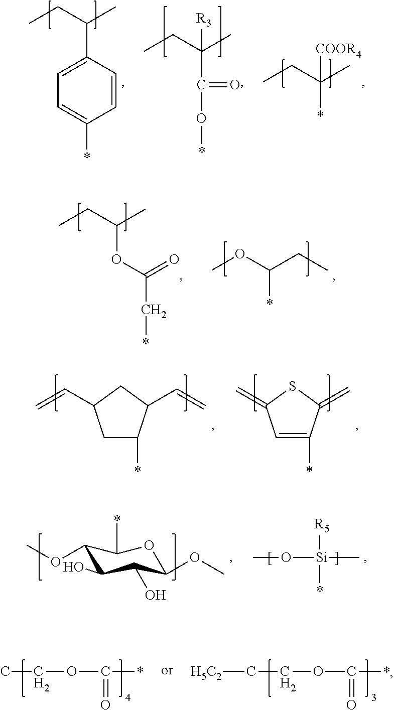 wherein A and B1are incorporated into the same polymer backbone via random or block polymerization;