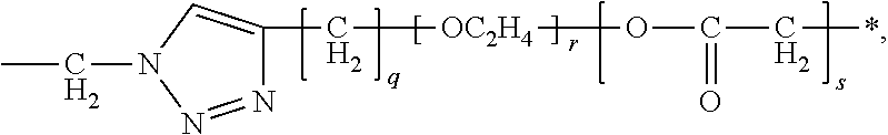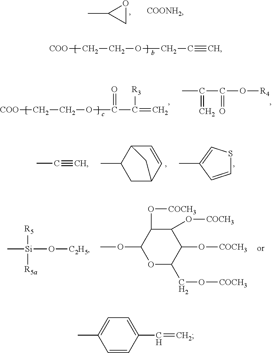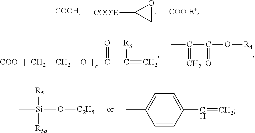 X is a direct bond, C1-C10-alkylene, —(CH2)o—NH—CO—O—(CH2)p—*, —(CH2)o—NH—CO—O—CH2—CHOH—CH2—*, —(CH2)o—NH—CO—NH—(CH2)p—*, —(CH2)o—NH—CO—S—(CH2)p—*, —(CH2)o—O—CO—CHR3—CH2—NH—(CH2)p—*, *—(CH2)o—O—CO—CHR3—CH2—NH—(CH2)p—, —(CH2)o—CO—O—(CH2)p-*, —(CH2)o—O—CO—CHR3—CH2—S—(CH2)p—*, *—(CH2)o—O—CO—CHR3—CH2—S—(CH2)p— —(CH2)o—O—CO—CH(COCH3)—CH2—C(COOR3)CH2—*, —(CH2)o—NH—CH2—CH2—C(COOR3)CH2—*, —(CH2)o—S—(CH2)o—C(COOR3)CH2—*, —(CH2)o—O—CO—CH(COCH3)—CH2—CHR3—CO—O—(CH2—CH2—O)t(CO)CH2—*, —(CH2)o—NH—CH2—CHR3—CO—O—(CH2CH2—O)t(CO)CH2—*, —(CH2)o—S—CH2—CHR2—CO—O—CH2—CH2—*, —(CH2)o—S—CH2CHR3—CO—O—(CH2CH2—O)t(CO)CH2—*, —(CH2)o—NH—CH2—CHR3—CO—O—CH2—CH2—*, —(CH2)o—O—CO—CH(COCH3)—CH2—CHR3—CO—O—(CH2—CH2—*, —(CH2)o—CO—O—CH2—CHOH—CH2—*, —(CH2)o—O(CO)—CH2—*, —(CH2CH2O)t—(CO)—CH2—*, —(CH2)o—CHOH—CH2—O(CO)—CH2—*, or