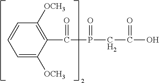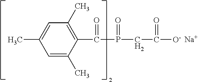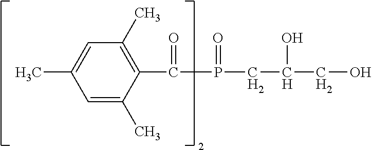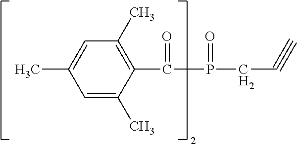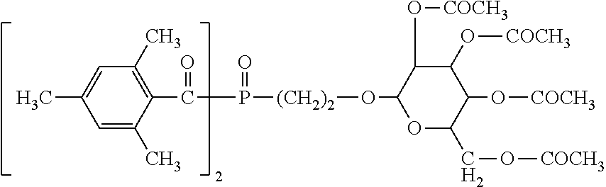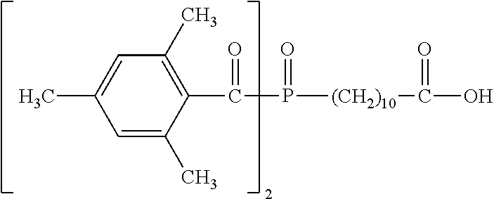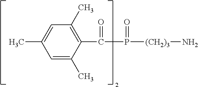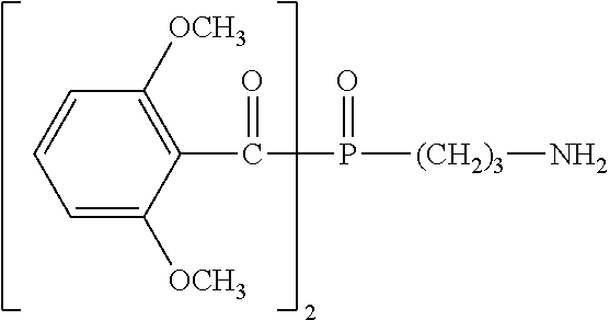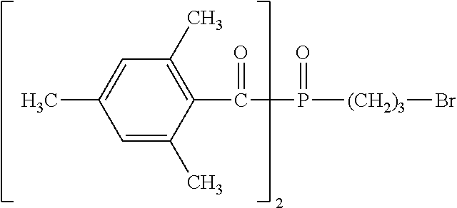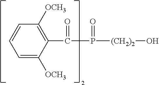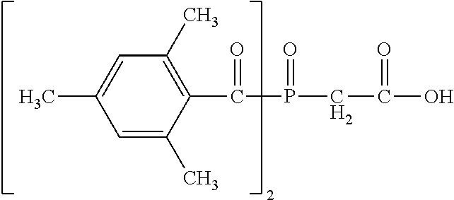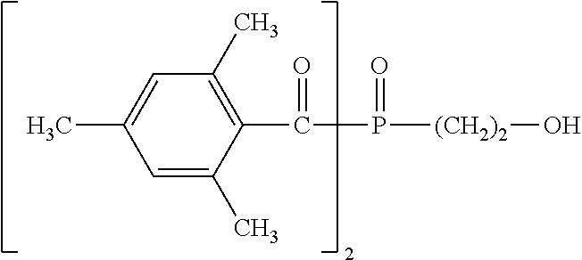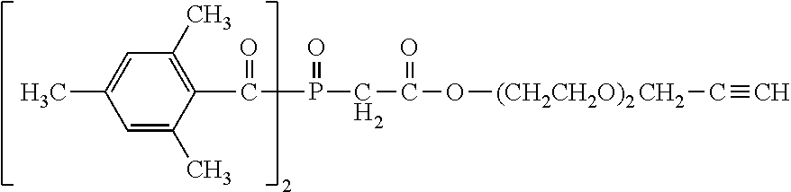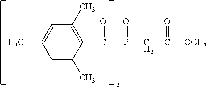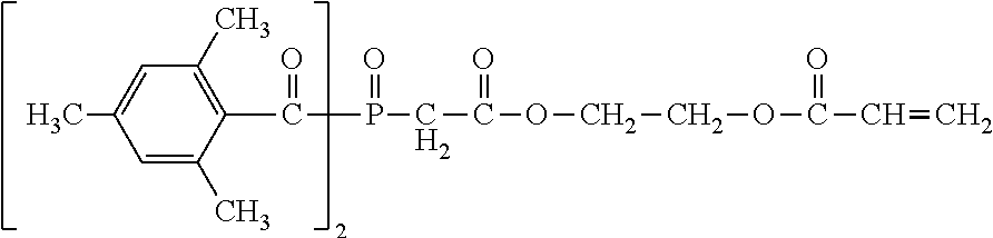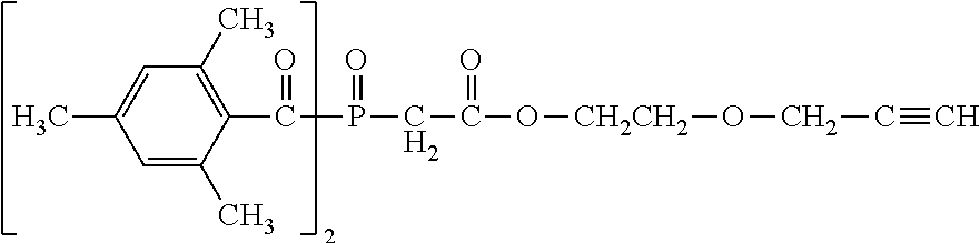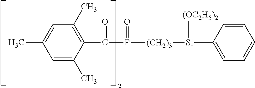 2% by weight of (3-(diethoxymethylsilyl)propyl)-bis(2,4,6-trimethylbenzoyl)phosphine oxide/diethoxydimethylsilan copolymer (example 38) are dissolved in the formulation by mixing at 50° C. for one hour.