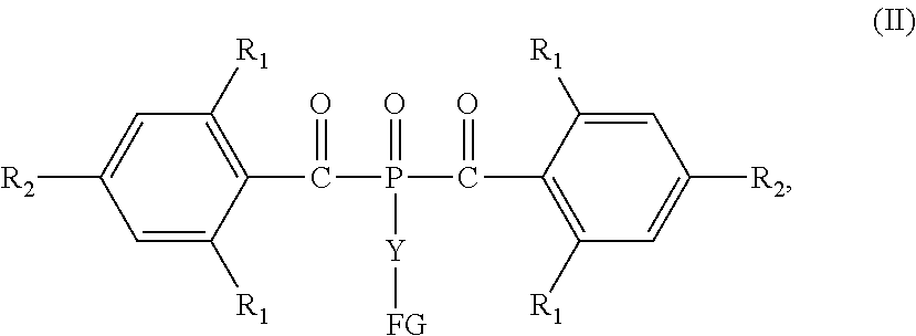 6. A functionalized bisacylphosphine oxide compound of the formula (II)