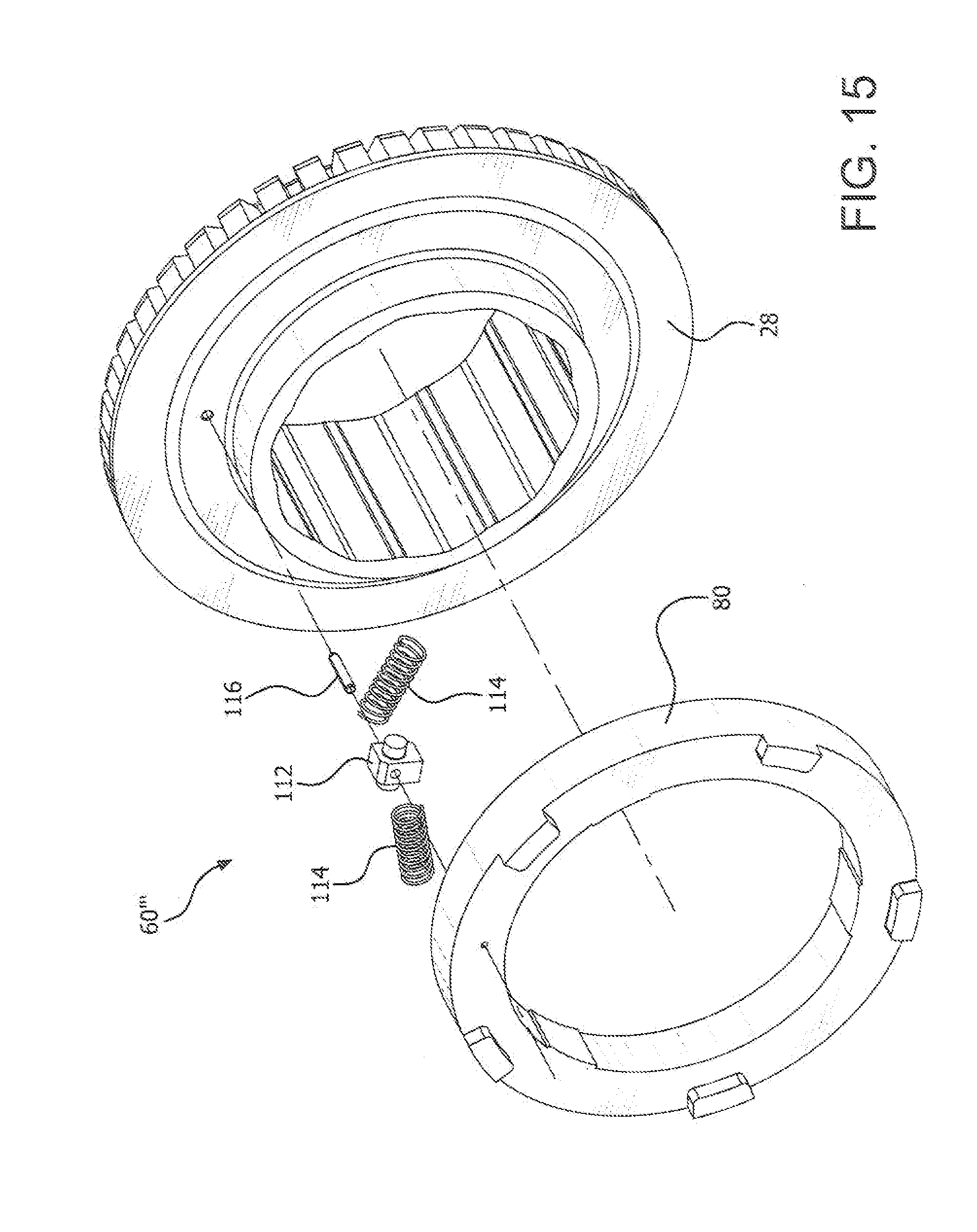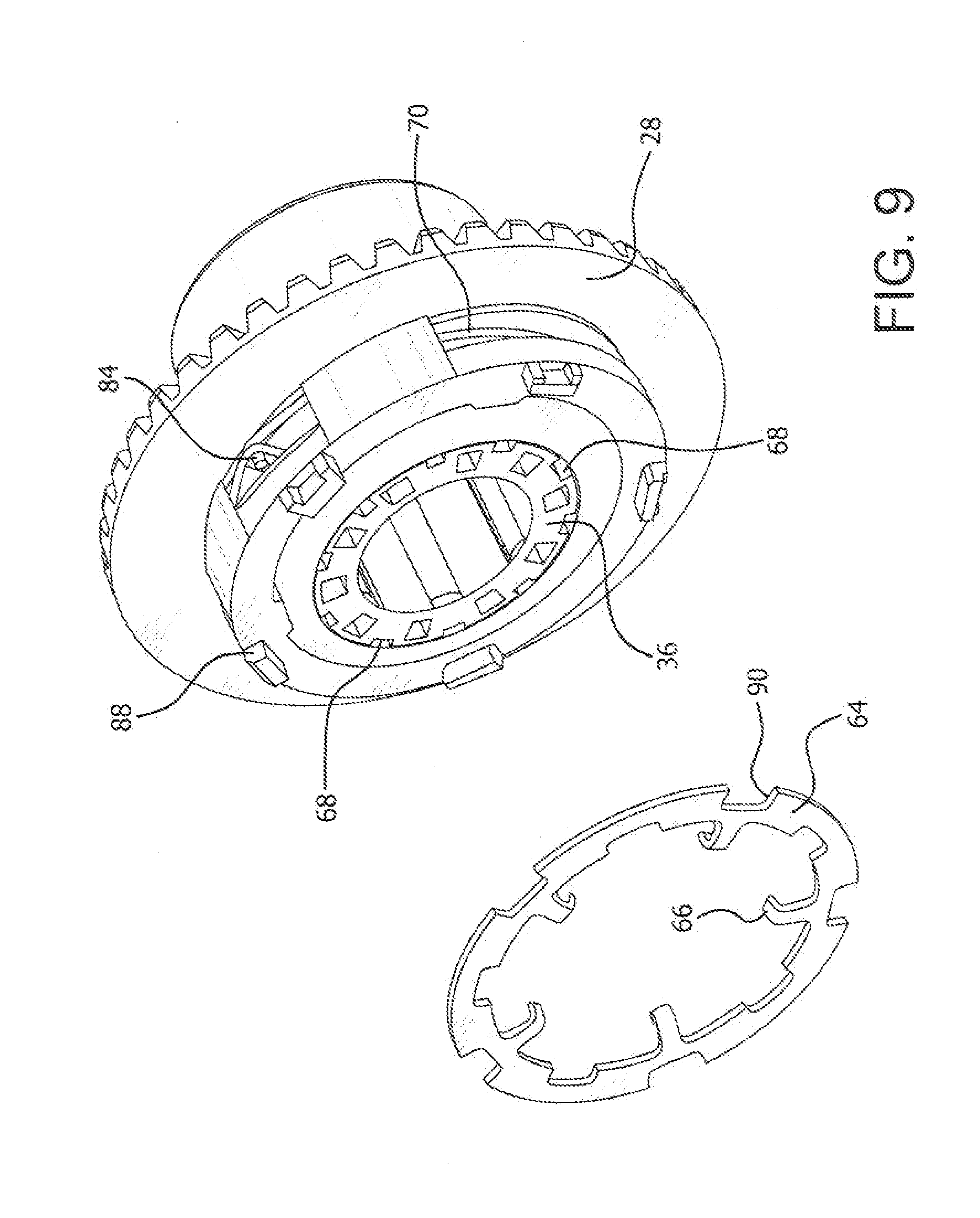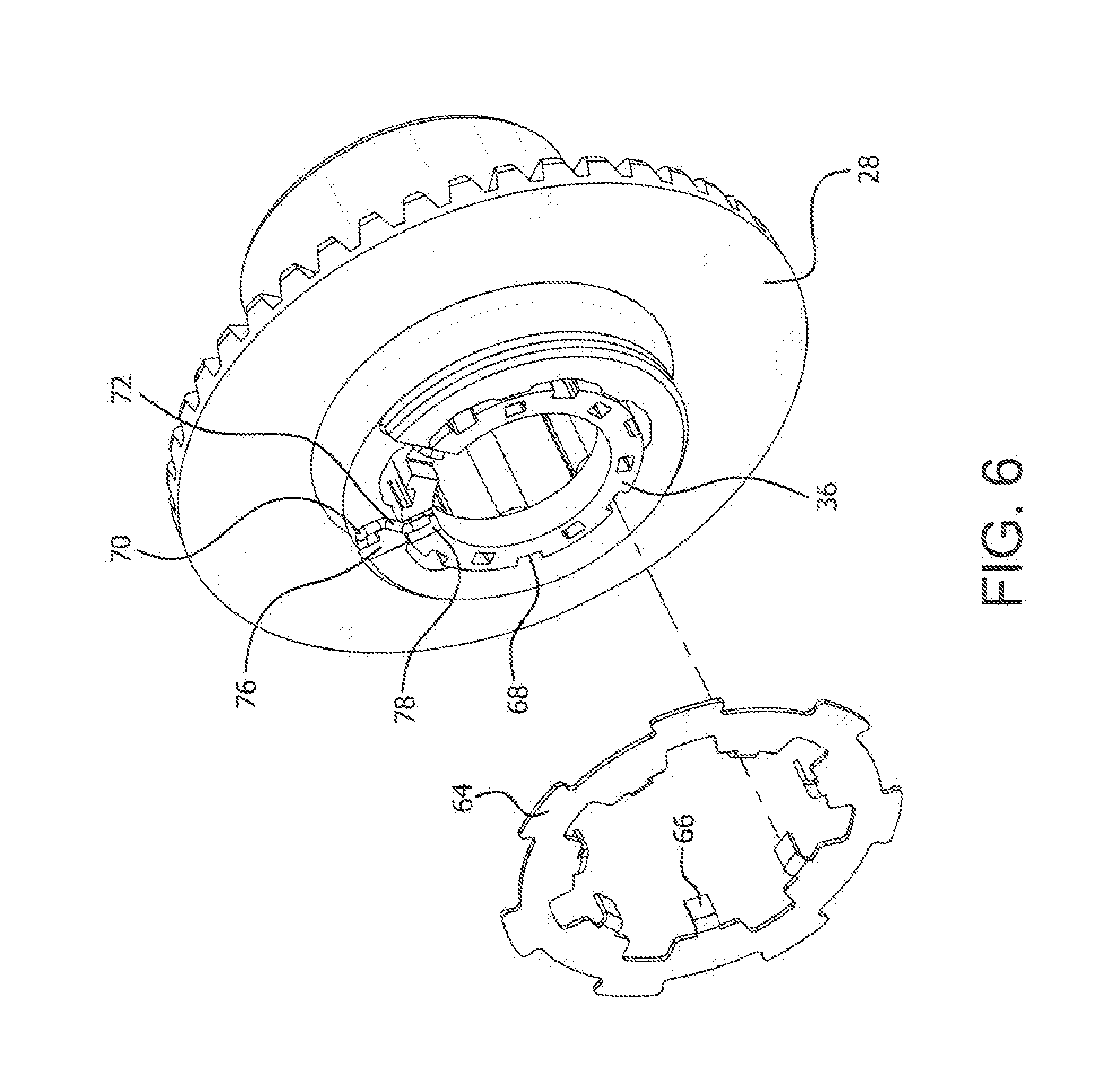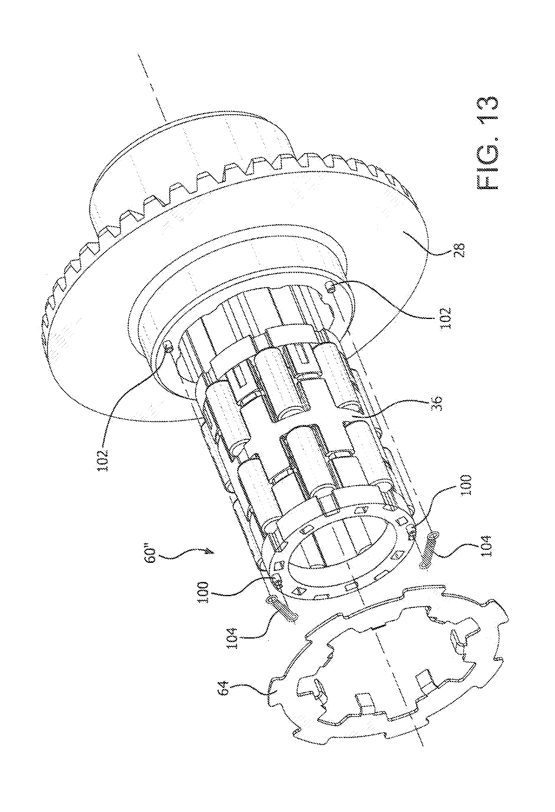 a clutch housing engaged with the end of the input shaft in the differential housing so as to permit transmission of rotational motion from the input shaft to the clutch housing, the clutch housing having an inner surface with a cam surface formed thereon, the end of the hub being located radially inward from the cam surface, and a roll cage located between the cam surface and the end of the hub, the roll cage having a plurality of slots formed in and spaced circumferentially about the roll cage, each slot having a roll located therein, the cage being movable relative to the clutch housing and the end of the hub, the roll cage having a first position where the roll cage is positioned relative to the clutch housing such that a plurality of the rolls are not engaged with at least one of either the inner surface of the clutch housing or the outer surface of the hub so that substantially no torque can transfer from the clutch housing to the hub through the rolls, and a second position where the roll cage is positioned relative to the clutch housing such that a plurality of the rolls are engaged with the inner surface of the clutch housing and the outer surface of the hub so as to permit torque transfer between the clutch housing and the hub; and an engagement control assembly for controlling the relative position of the roll cage with respect to the cam surface of the clutch housing, the engagement control assembly including: