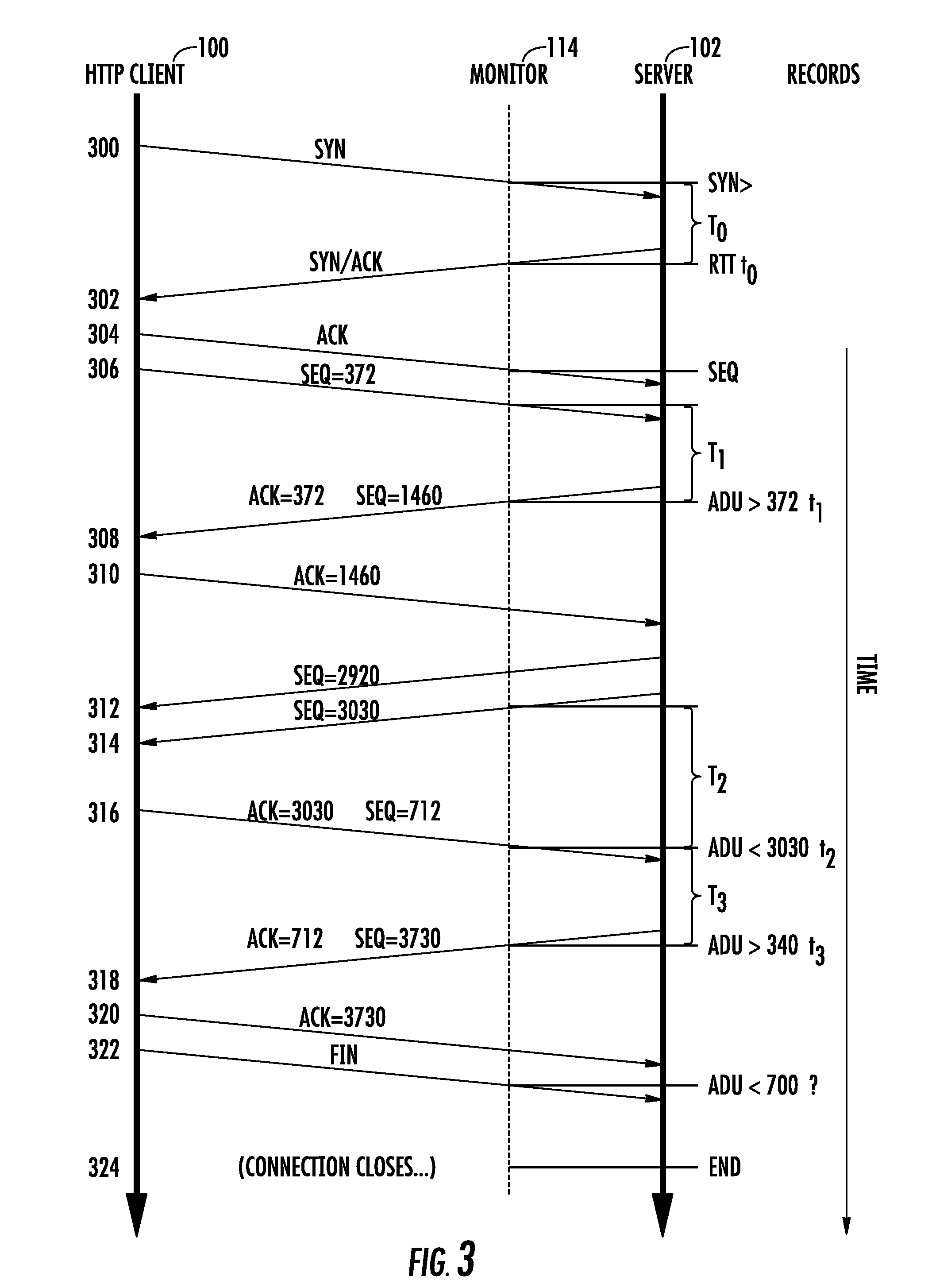 connection identifier structure Symbol Mnemonic Type Description IL local_ip_addr Internet address the local (i.e. UNC-side) IPv4 address (See Section 3.1.1.) IR remote_ip_addr Internet address the remote (i.e. Internet-side) IPv4 address PL local_port unsigned 2-byte integer the local port number PR retmote_port unsigned 2-byte integer the remote port number essential per-connection state in adudump Symbol Mnemonic Type Description SC connection_state enumeration either NEW_SYN, NEW_SYNACK, HALF_OPEN, MOSTLY_OPEN, SEQUENTIAL, or CONCURRENT (See Section 3.1.4.) K connection_id composite: “key” the local/remote address/port number, as shown in Table 3.2. FI inbound_flow flow the inbound flow state FO outbound_flow flow the outbound flow state essential per-flow state in adudump Symbol Mnemonic Type Description SF flow_state enumeration either INACTIVE, ACTIVE, or CLOSED (See Section 3.1.4.) NO initial_seq_num unsigned 4-byte integer the initial sequence number seen in the flow (set during the 3-way handshake) NN next_seq_num unsigned 4-byte integer the next expected sequence number NA adu_seq_num unsigned 4-byte integer sequence number of the start of the last request or response AO initial_ack_num unsigned 4-byte integer the initial acknowledgement number seen in the flow (set during the 3-way handshake) AH highest_ack_num unsigned 4-byte integer the highest acknowledgement number seen so far TL last_send timestamp last time a new segment was seen in this direction One-Pass Algorithms for A-B-T Inference
