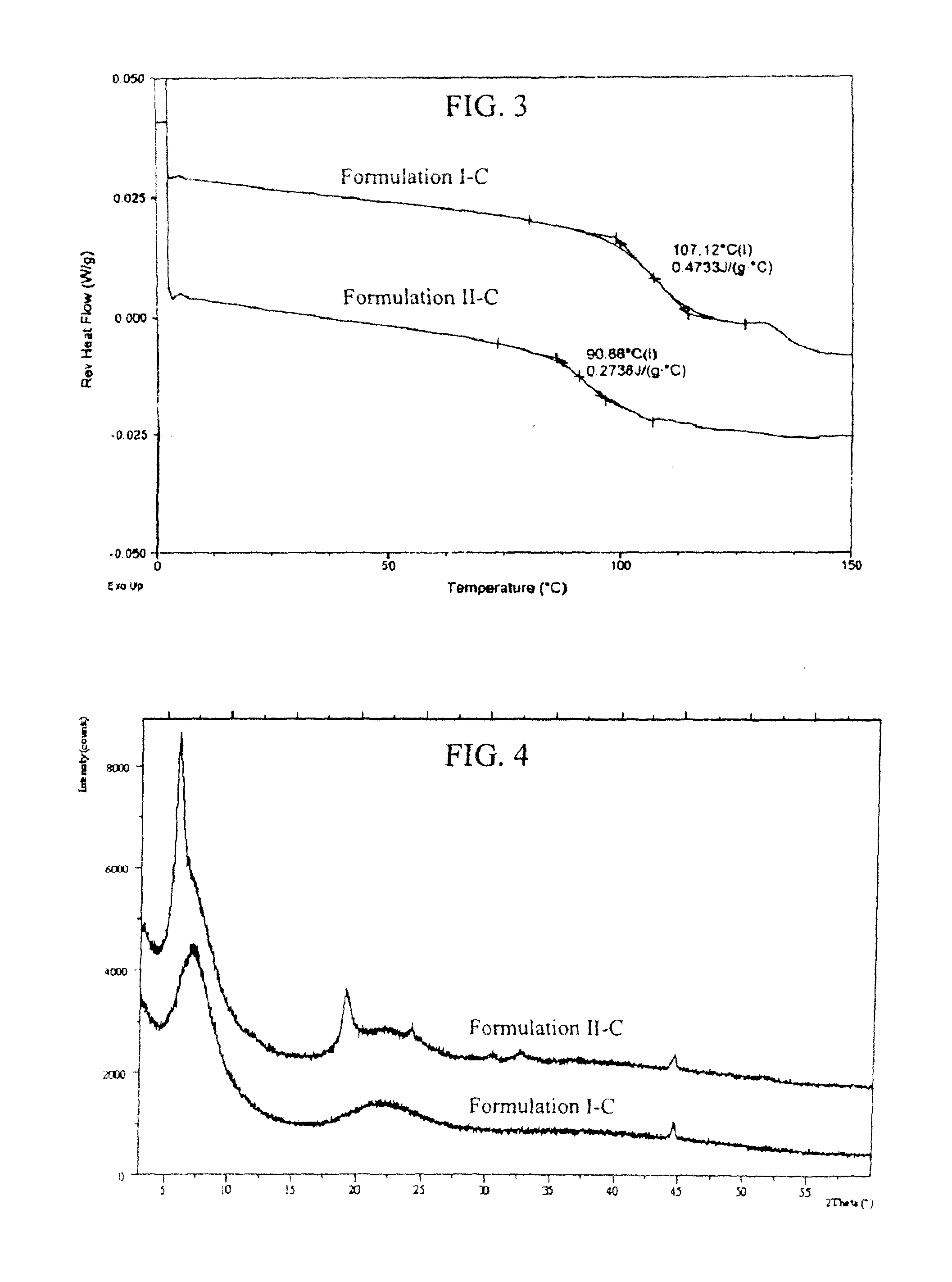 The results are shown in Table 33. Placebo-B (n=3 animals, data not reported in table) was below the detectable range of the assay, which was indicative that there was no cross reactivity between the bovine IgG and the native mouse protein in either the serum or the BAL. It can be seen that IgG delivered to the lung increases stepwise with increasing number of capsules delivered to the animals. Furthermore, while treatment with 2 or 4 capsules of Formulation XVIII resulted in slight increases in serum IgG content that were in the range of the detection limit of the ELISA kit, treatment with 6 capsules IgG resulted in an increase to approximately 100 ng/ml IgG. Assuming an approximate serum volume of 2 ml, this would suggest that, on average, 200 ng of IgG was delivered systemically with 6 capsules of Formulation XVII treatment. This demonstrated that calcium-containing dry powders can be utilized to deliver proteins systemically.