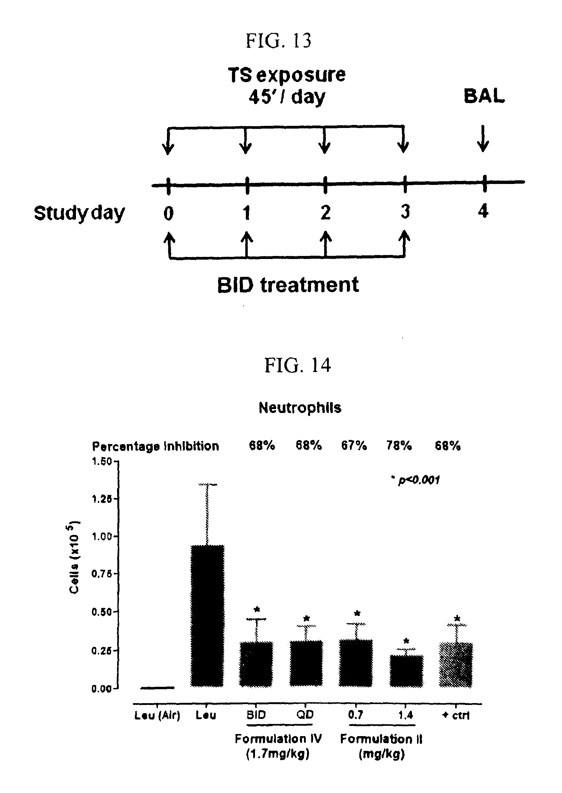 Formulation XI evaluated in a mouse model of allergic asthma using ovalbumin (OVA) as an allergen. The model has been described in Example 7, and the dosing protocol was shown pictorially in FIG. 6.