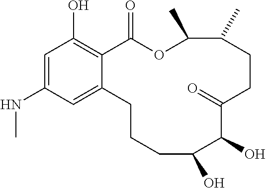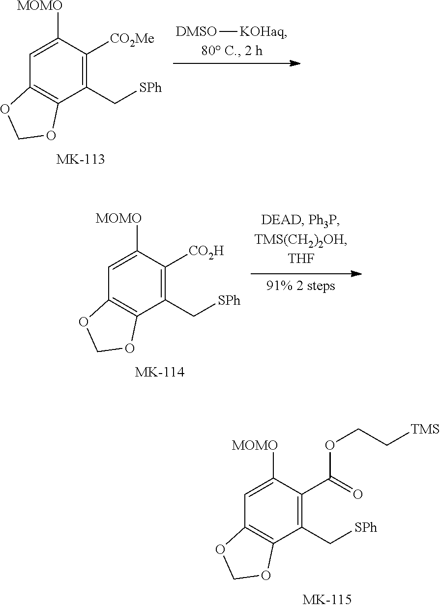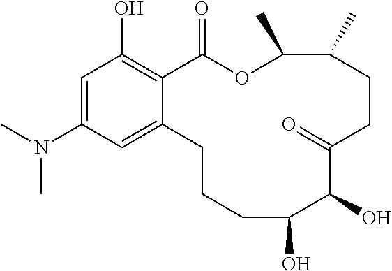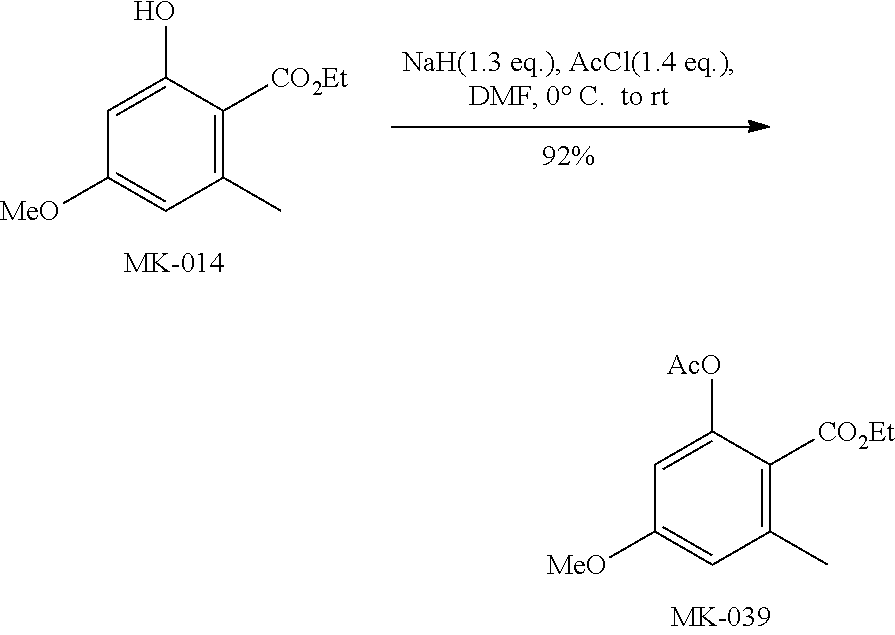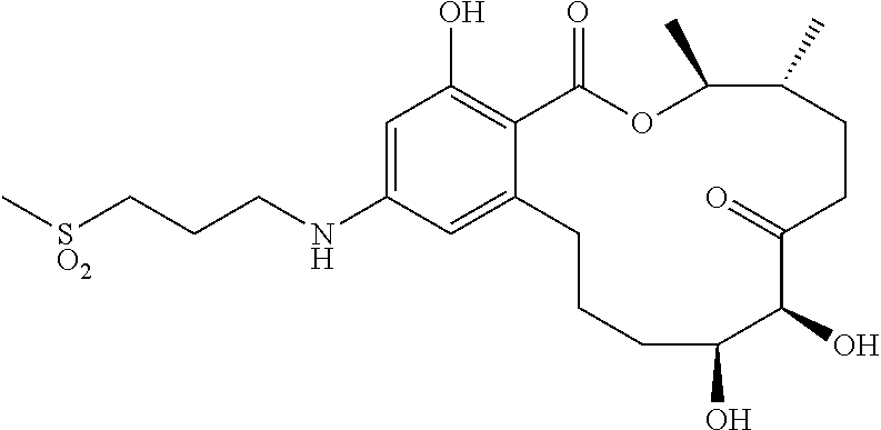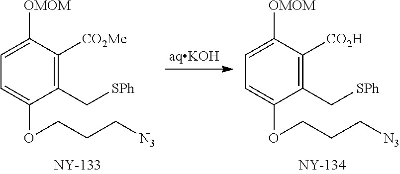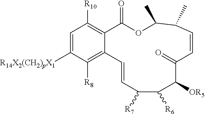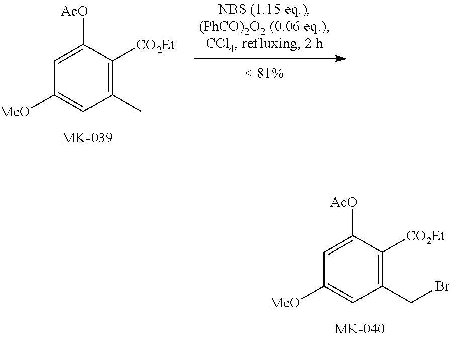 Step 10 A solution of compound 453-MS-101B (25 mg, 52.3 μmol) in dichloromethane (1.5 mL) was treated with PCC (135 mg, 0.627 mmol) in the presence of powdered 4 Å molecular sieves (135 mg). The reaction mixture was stirred vigorously for 40 minutes at room temperature. Basification with excess triethylamine, followed by chromatographic purification gave compound 453-MS-116 (14 mg, 63%). Step 11 A solution of compound 453-MS-116 (13 mg, 27.3 μmol) in a mixture of dioxane (3 mL) and deuterium oxide (3 mL) was treated with Dowex® (50WX8-100, 200 mg), and stirred at room temperature for approximately 16 hours. The usual work up, followed by purification using reversed phase HPLC, gave compound B2356 (2.4 mg, 25%) [m/z: 349.3 (M+1, 60%), 161.0 (100%)], and compound B2358 (2 mg, 20%). Preparation of Compound B2357 (C14 Hydroxy) & Compound B2359 (C14 OMOM): Step 1 A solution of compound 453-MS-101A (24 mg, 50.1 μmol) in dichloromethane (2 mL) was treated with pyridinium chlorochromate (130 mg, 0.602 mmol) in the presence of powdered 4 Å molecular sieves (130 mg). The reaction mixture was stirred vigorously for 1 hour at room temperature. Basification with excess triethylamine, followed by chromatographic purification gave compound 453-MS-122 (19 mg, 80%). Step 2 A solution of compound 453-MS-122 (21 mg, 44 μmol) in a mixture of acetonitrile (4.6 mL) and dichloromethane (1.1 mL) was treated with 48% aqueous hydrofluoric acid (1.1 mL), and stirred at room temperature for approximately 2 hours. The usual work up, followed by purification using reversed phase HPLC, gave compound B2357 (3.5 mg, 23%) [m/z: 349.2 (M+1, 50%), 161.0 (100%)], and compound B2359 (1.6 mg, 10%). Preparation of C14-C, H, or Halogen Analogs, NF0887, NF2433, NF2435, NF2436, NF2557 and ER-805053, Synthetic Procedure for NF2433 Using same procedure for 16, YE-06 (526 mg, 0.714 mmol) was converted to NY-78 (657 mg). Using same procedure for 18, NY-78 (653 mg, 0.644 mmol) was converted to NY-79 (529 mg). Using same procedure for 509-HD-116, NY-79 (528 mg, 0.584 mmol) was converted to NY-80 (231 mg). NY-80 was used without purification for the next step. Using same procedure for TM-12, NY-80 (230 mg, 0.511 mmol) was converted to NY-81 (157 mg). Using same procedure for 509-HD-125, NY-81 (127 mg, 0.294 mmol) was converted to NY-82 (118 mg). Using same procedure for NF-0675, NY-82 (118 mg, 0.274 mmol) was converted to NF-2433 (79 mg). Synthetic Procedure for NF-2436 Using same procedure for 9, NY-83 (7.46 g, 40 mmol) was converted to NY-84 (11.39 g). To a mixture of NY-84 (3 g, 10 mmol), Et2NH (2.07 mL, 20 mmol) and THF (80 mL), isopropylmagenesium chloride (2M in THF, 10 mL, 20 mmol) was gradually added at −30° C. The reaction mixture was allowed to warm to 0° C. The reaction mixture was quenched with sat. NaHCO3 and extracted with EtOAc. The organic layer was washed with water, brine, dried over Na2SO4, filtered and concentrated. The crude product was purified on silica gel column with hexane/EtOAc, 10:1, 8:1, 6:1 to give 3.21 g of NY-85. NY-85 (3.2 g, 9.36 mmol) and TMEDA (2.2 mL, 14.58 mmol) were dissolved in THF (30 mL) and cooled to −78° C., under nitrogen. Then, sec-BuLi (1.3M/cyclohexane, 11 mL, 14.3 mmol) was slowly added and the reaction was stirred at −78° C. for 1 hr. DMF (1.4 mL, 18.08 mmol) was added to the solution, then the solution was stirred at −78° C. for 30 min. The mixture was quenched with sat.NH4Cl and extracted with EtOAc. The organic layer was washed with water, brine and dried over Na2SO4, filtered and concentrated. The crude product was purified on silica gel column with hexane/EtOAc, 6:1 to give 2.56 g of NY-86. To a solution of NY-86 (2.55 g, 6.89 mmol) in MeOH (30 mL), NaBH4 (260 mg, 6.87 mmol) was added at 0° C. and stirred for 30 min. The reaction mixture was quenched with sat. NH4Cl and extracted with EtOAc. The organic layer was washed with water, brine, dried over Na2SO4, filtered and concentrated to give 2.5 g of NY-87. A mixture of NY-87 (2.5 g, 6.72 mmol), AcOH (1.92 mL, 33.54 mmol) and EtOH (50 mL) was refluxed for 4 hrs. The mixture was concentrated and the residue was alkalized with sat.NaHCO3 and extracted with EtOAc. The aqueous layer was reextracted with EtOAc (×2) and the organic layers were washed with sat. NH4Cl, water, brine, dried over Na2SO4, filtered and concentrated. The crude crystallized product was washed with Et2O to give 718 mg of NY-88. The mother liquid was purified on silica gel column with hexane/EtOAc, 3:1, 2:1 to give additional 230 mg of NY-88. Using same procedure for 509-HD-209, NY-88 (940 mg, 5.09 mmol) was converted to NY-89 (676 mg). To a solution of NY-89 (1.74 g, 7.61 mmol) in DMSO (20 mL), a solution of KOH (450 mg, 8.02 mmol) in water (10 mL) was added and stirred at room temperature for 30 min. Then, the mixture was stirred at 40° C. for 30 min. MeI (9.5 mL, 153 mmol) was added to the reaction mixture, and the mixture was stirred at room temperature for 3 hrs. The reaction mixture was quenched with sat. NH4Cl and extracted with EtOAc. The organic layer was washed with water, 5% citric acid, water, sat.NaHCO3, brine, dried over Na2SO4, filtered and concentrated to give 1.93 g of NY-90. To a solution of NY-90 (1.93 g, 7.61 mmol), Ph2S2 (5 g, 22.9 mmol), pyridine (3.7 mL, 45.75 mmol),nBu3P (5.7 mL, 22.88 mmol) were added at 0° C. The mixture was allowed to warm to room temperature and stirred for 12 hrs. The reaction mixture was diluted with EtOAc and washed with 5% citric acid (×2), water, sat. NaHCO3, brine, dried over Na2SO4, filtered and concentrated. The crude product was purified on silica gel column with hexane/EtOAc, 15:1, 5:1 to give 1.9 g of NY-91. Using same procedure for 509-HD-212, NY-91 (2.12 g, 6 mmol) was converted to NY-92 (2.07 g). NY-92 was used without purification for the next step. Using same procedure for 509-HD-213, NY-92 (2.07 g, 6 mmol) was converted to NY-93 (2.19 g). Using same procedure for 16, YE-06 (505 mg,