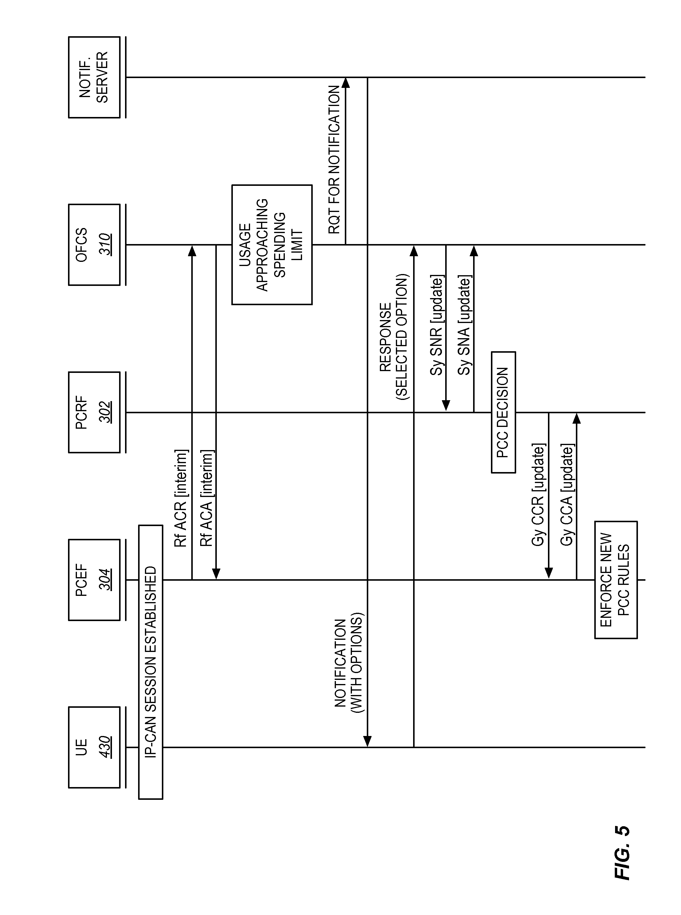 an offline charging system that connects to a Policy and Charging Rules Function (PCRF) of a packet core network; the offline charging system is configured to monitor usage of an end user over a packet core network based on accounting information, to identify a spending limit that the end user is allowed to consume during a time period, to determine that the usage of the end user is approaching the spending limit during a session, to identify options for the end user to continue with the session as the usage of the end user approaches the spending limit, and to initiate a notification to the end user indicating the options; the offline charging system is further configured to receive a response from the end user selecting one of the options, and to convey the selected option to the PCRF to modify Policy and Charging Control (PCC) rules for the session based on the selected option. 14. The system of the offline charging system communicates with the PCRF over a Diameter Sy interface. 15. The system of the offline charging system is further configured to convey the information regarding the spending limit to the PCRF in a Subscribe-Notifications-Request (SNR) over the Diameter Sy interface. 16. The system of the options include downgrading a Quality of Service (QoS) for the session at the same rate or a lower rate. 17. The system of the options include upgrading or maintaining a Quality of Service (QoS) for the session at a higher rate. 18. The system of the notification further includes a present Quality of Service (QoS) for the session and a new QoS for the session if the usage exceeds the spending limit. 19. The system of the notification further includes a present rate for the session and a new rate for the session if the usage exceeds the spending limit. 20. The system of the PCRF is configured to process the selected option to generate the modified PCC rules for the session, and to transmit the modified PCC rules to a Policy and Rules Enforcement Function (PCEF).
