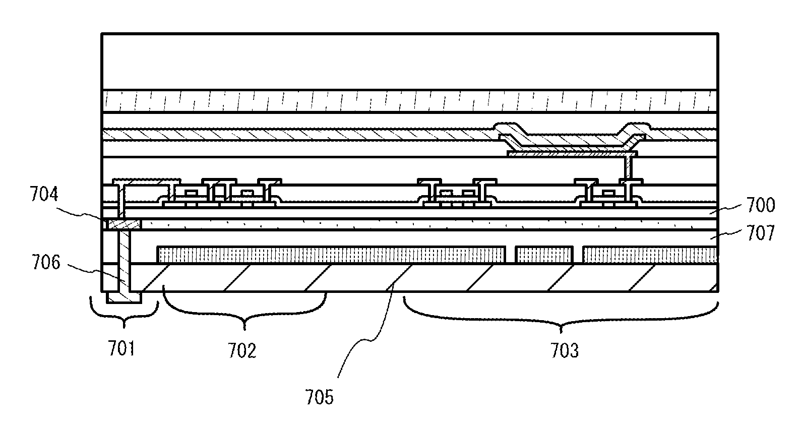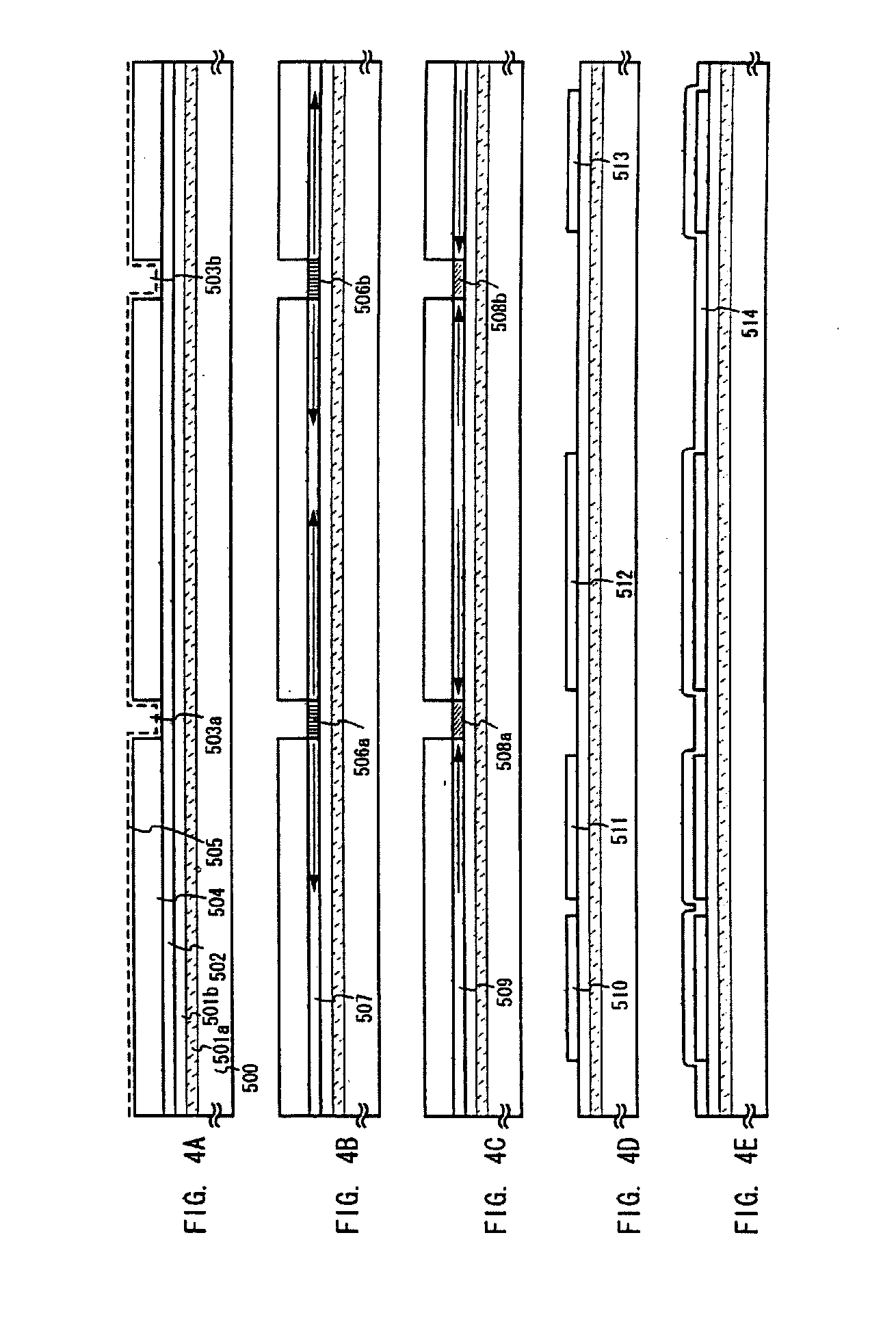Though a terminal portion is not illustrated in FIGS. 12, 13, and 16 to 18, a terminal portion may be, similarly to the structure of the terminal portions described in Embodiment 2 and Embodiment 3, formed by forming a contact hole reaching the separating layer and forming an electrode connected to a desired wiring.