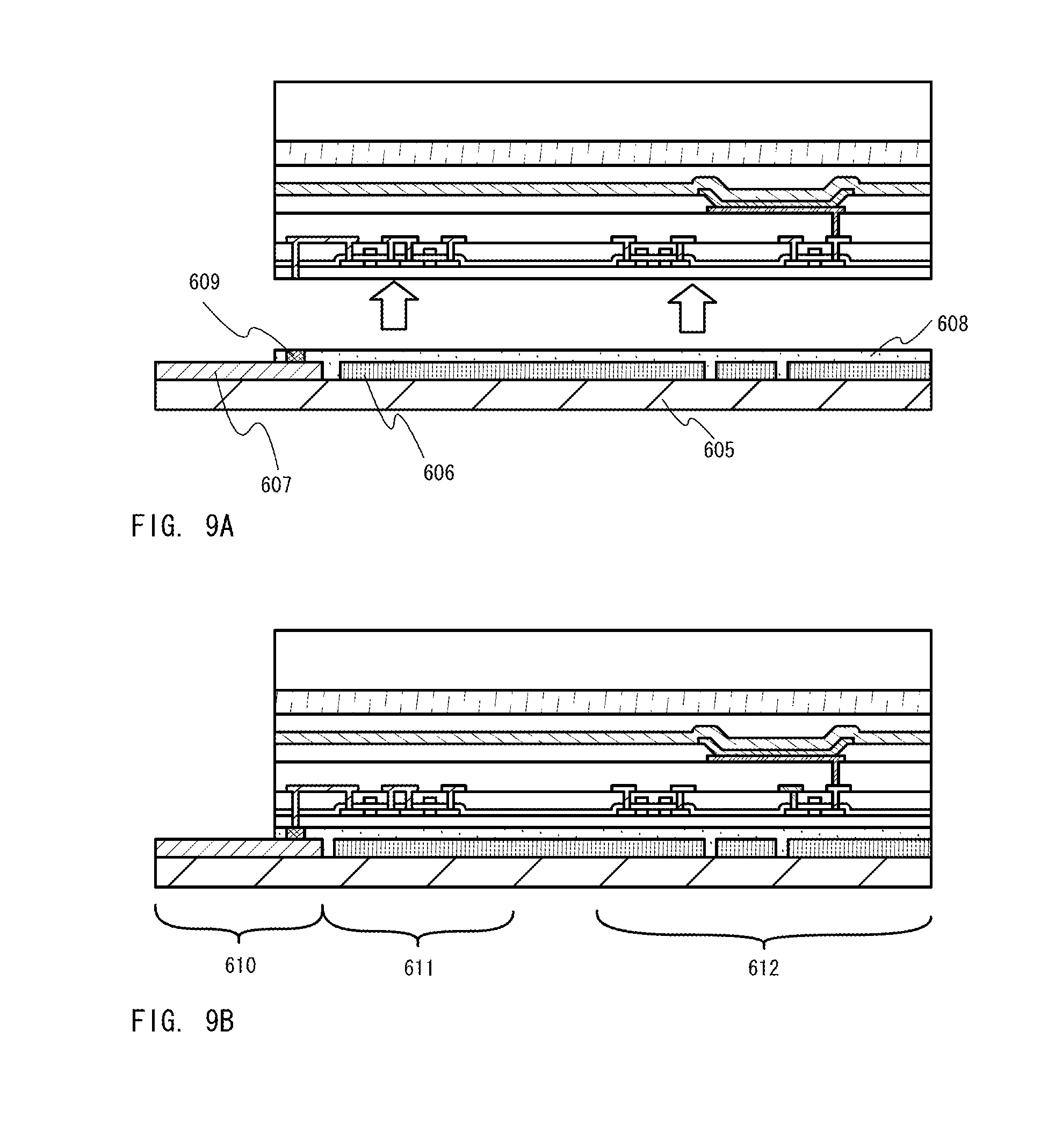 After that, as illustrated in FIG. 18A, a first interlayer insulating film 158 is formed over the gate electrodes and the gate insulating film. The first interlayer insulating film may comprise a silicon oxide film, a silicon oxynitride film, a silicon nitride film, or laminated films as a combination thereof. In any case, the first interlayer insulating film 158 comprises an inorganic insulating material. The thickness of the first interlayer insulating film 158 is 100 to 200 nm.