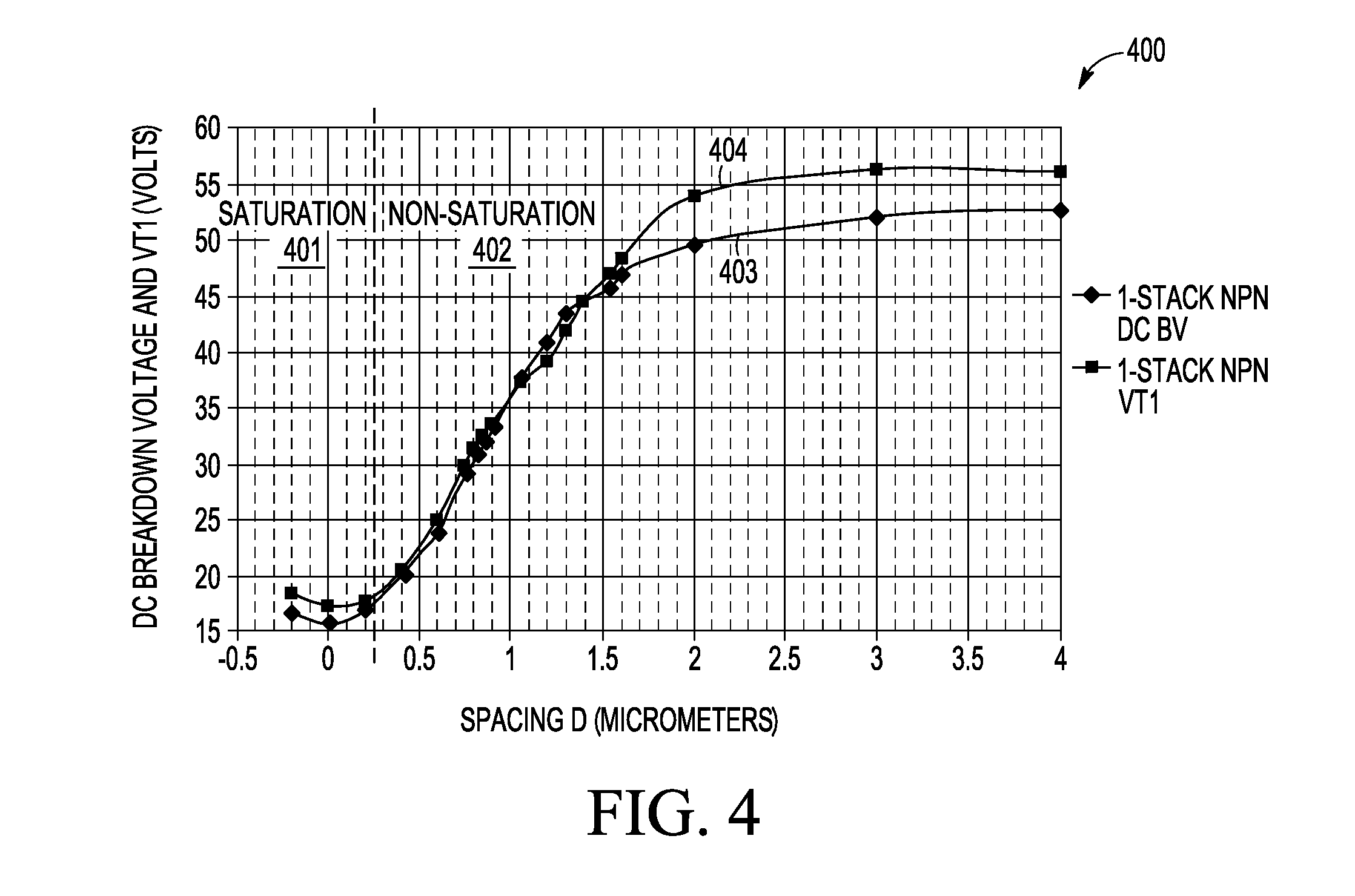 a first bipolar junction transistor (BJT) stack having a first terminal connected to a first integrated circuit pin and a second terminal connected to a first node and comprising a first plurality of bipolar transistors connected in series, each formed with a base-to-collector spacing dimension which provides a predetermined trigger voltage; a second BJT stack having a first terminal connected to a second integrated circuit pin and a second terminal connected to a second node and comprising a second plurality of bipolar transistors connected in series, each formed with a base-to-collector spacing dimension which provides a predetermined trigger voltage; and a third shared BJT stack having a first terminal connected to the first and second BJT stacks at the first and second nodes, respectively, and a second terminal coupled to a shared reference voltage terminal, the third shared BJT stack comprising a third plurality of bipolar transistors connected in series, each formed with a base-to-collector spacing dimension which provides a predetermined trigger voltage. 2. The ESD protection circuit of a first bipolar transistor comprising a first base region, a first emitter region, and a first collector region which is spaced apart from the first base region by a first base-to-collector spacing dimension which provides the first bipolar transistor with a first trigger voltage, where the first base region and first emitter region are connected to the first integrated circuit pin; and a second bipolar transistor comprising a second base region, a second emitter region, and a second collector region which is spaced apart from the second base region by a second base-to-collector spacing dimension which provides the second bipolar transistor with a second trigger voltage, where the second base region and second emitter region are connected together to the first node. 3. The ESD protection circuit of a third bipolar transistor comprising a third base region, a third emitter region, and a third collector region which is spaced apart from the third base region by a third base-to-collector spacing dimension which provides the third bipolar transistor with a third trigger voltage, where the third base region and third emitter region are connected to the second integrated circuit pin; and a fourth bipolar transistor comprising a fourth base region, a fourth emitter region, and a fourth collector region which is spaced apart from the fourth base region by a fourth base-to-collector spacing dimension which provides the fourth bipolar transistor with a fourth trigger voltage, where the fourth base region and fourth emitter region are connected together to the second node. 4. The ESD protection circuit of a fifth bipolar transistor comprising a fifth base region, a fifth emitter region, and a fifth collector region which is spaced apart from the fifth base region by a fifth base-to-collector spacing dimension which provides the fifth bipolar transistor with a fifth trigger voltage, where the fifth base region and fifth emitter region are coupled to the first node and to the second node; and a sixth bipolar transistor comprising a sixth base region, a sixth emitter region, and a sixth collector region which is spaced apart from the sixth base region by a sixth base-to-collector spacing dimension which provides the sixth bipolar transistor with a sixth trigger voltage, where the sixth base region and sixth emitter region are connected together and coupled to the shared reference voltage terminal. 5. The ESD protection circuit of 6. The ESD protection circuit of 7. The ESD protection circuit of 8. The ESD protection circuit of 9. The ESD protection circuit of 10. The ESD protection circuit of 11. The ESD protection circuit of 12. The ESD protection circuit of 13. The ESD protection circuit of 14. The ESD protection circuit of 15. The ESD protection circuit of 16. A stacked electrostatic discharge (ESD) protection circuit for protecting a plurality of signal pins on an integrated circuit, comprising: