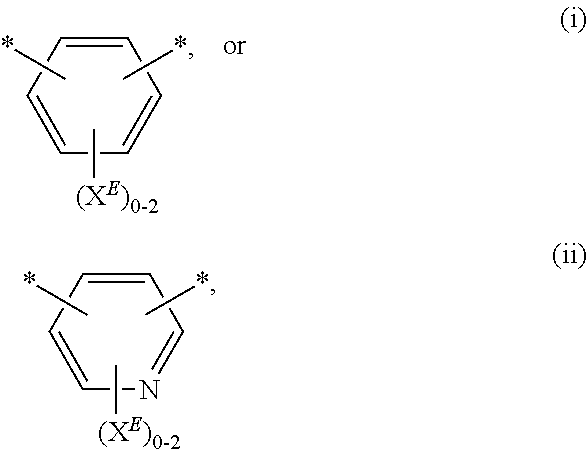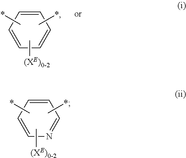(a) C3-6cycloalkyl, (b) C1-6haloalkyl, (c) OH (d) O—C1-6alkyl, (e) O—C1-6haloalkyl, (f) O—C3-6cycloalkyl, (g) SH, (h) S—C1-6alkyl, (i) S—C1-6haloalkyl, (j) S—C3-6cycloalkyl, (k) halo, (l) CN, (m) NO2, (n) NH2, (o) N(H)—C1-6alkyl, (p) N(—C1-6alkyl)2, (q) N(H)C(O)—C1-6alkyl, (r) N(H)CH(O), (s) CH(O), (t) C(O)—C1-6alkyl, (u) C(O)OH, (v) C(O)O—C1-6alkyl, (w) SO2H and (x) SO2—C1-6alkyl; or (ii) a 6-membered heteroaromatic ring containing a total of from 1 to 3 heteroatoms selected from 1 to 3 N, zero or 1 O, and zero or 1 S, wherein, in addition to the two moieties attached to the ring as shown in Formula I, the ring is unsubstituted, or substituted with from 1 to 3 independently selected substituents XA; R4Ais selected from the group consisting of: wherein the asterisk (*) denotes the point of attachment to the rest of the compound; R4Bis H or C1-6alkyl; alternatively, R4Aand R4Btogether with the carbon to which they are attached form a C3-6cycloalkyl which is unsubstituted, or substituted with phenyl, wherein the phenyl is unsubstituted, or substituted with from 1 to 3 XB; each XBand each XCare independently selected from the group consisting of: