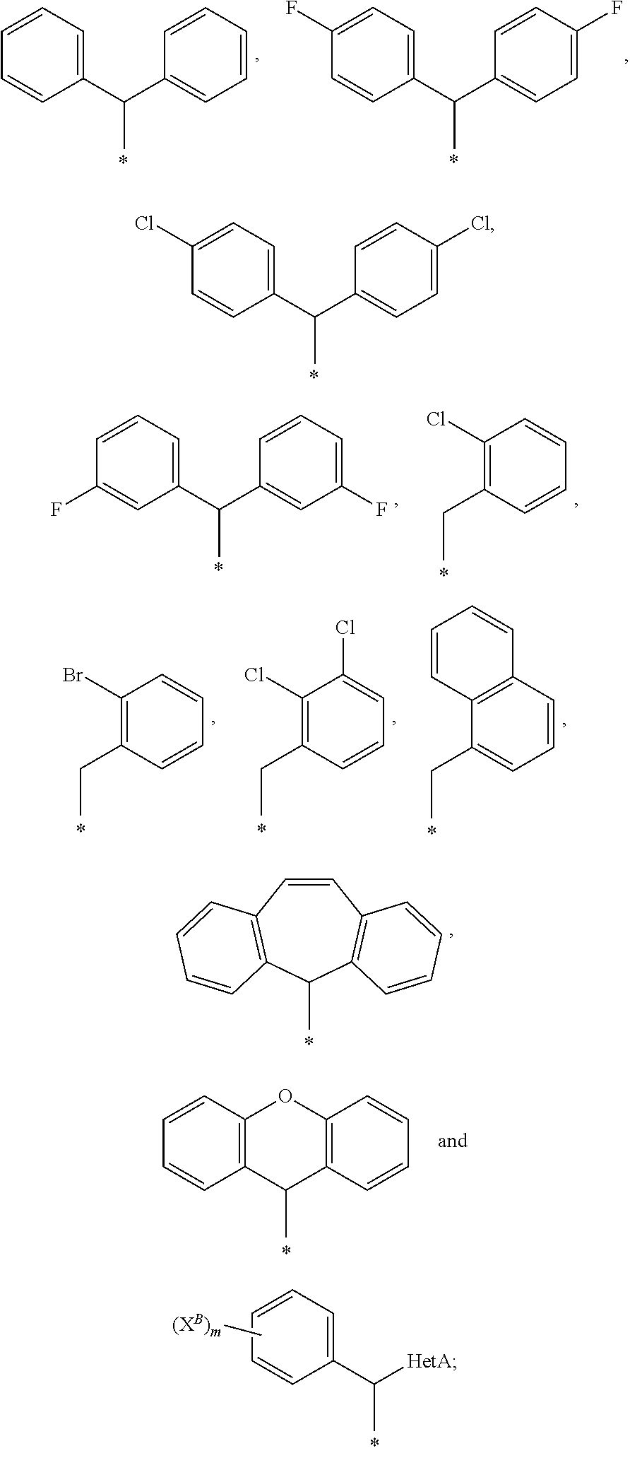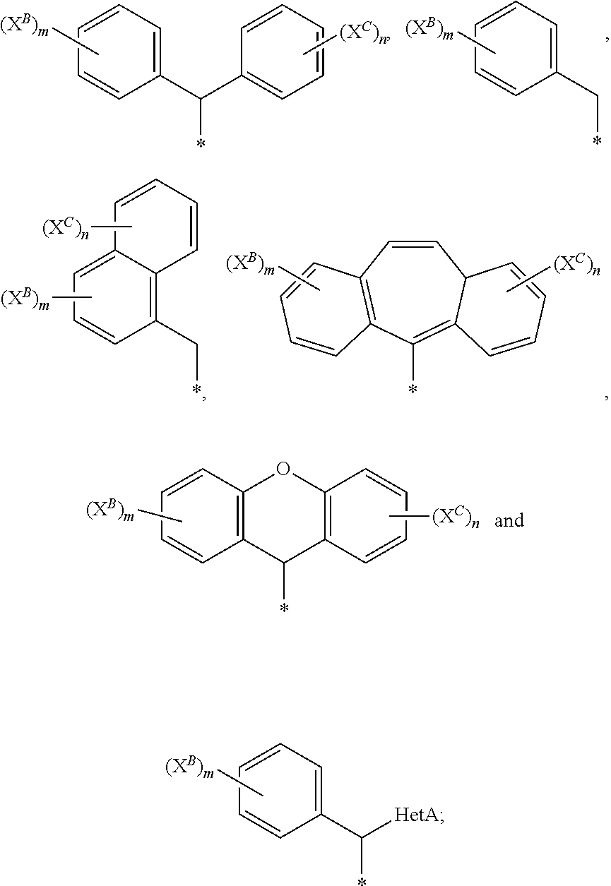 (1) CH3, (2) CH2CH3, (3) CF3, (4) OH, (5) OCH3, (6) OCF3, (7) Cl, (8) Br, (9) F and (10) CN; R4Ais selected from the group consisting of: R4Bis H; each XBand each XCare independently selected from the group consisting of: