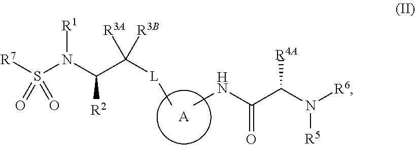 Data from Assays Pepcleave Enzyme inhibition Spread Example IC50(nM) IC95(nM) 1 0.02 74 2 1.2 919 3 0.2 307 4 0.2 838 5 0.7 1194 6 0.07 2342 7 1.6 N.D. 8 1.7 1548 9 0.3 957 10 0.7 1186 11 0.05 683 12 0.9 1528 13 1.9 1183 14 1.2 1177 15 1.8 2443 16 8.1 N.D. 17 10.0 N.D. 18 2.3 755 19 4.2 766 20 3.5 2198 21 3.7 N.D. 22 1.7 N.D. 23 0.06 2500 24 4.2 1120 25 4.8 1153 26 0.4 1256 27 6.9 1498 28 0.1 194 29 2.9 1252 30 2.1 1778 31 3.7 1258 32 2.4 1735 33 50.2 N.D. 34 41.6 N.D. 35 18.9 N.D.