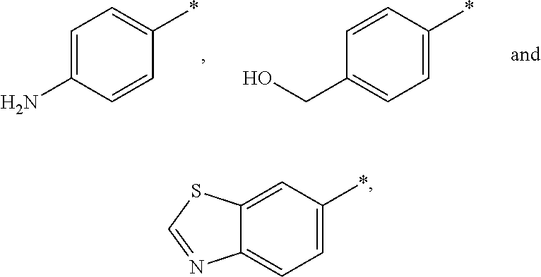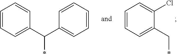 wherein the asterisk (*) denotes the point of attachment to the rest of the compound;
