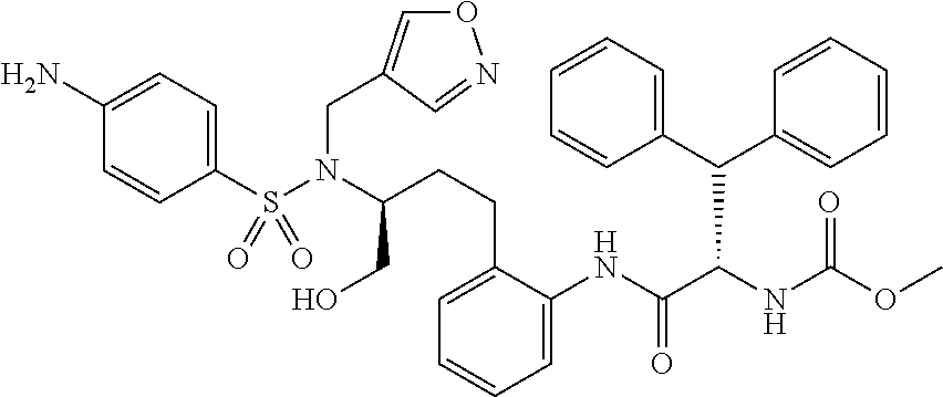 N-{2-[(3S)-3-{[(4-aminophenyl)sulfonyl(isoxazol-4- ylmethyl)amino}-4-hydroxybutyl]phenyl}-Nα- (methoxycarbonyl)-β-phenyl-L-phenylalaninamide