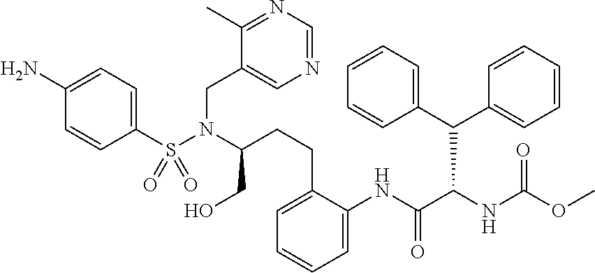 N-{2-[(3S)-3-{[(4-aminophenyl)sulfonyl][(4- methylpyrimidin-5-yl)methyl]amino}-4- hydroxybutyl]phenyl}-Nα-(methoxycarbonyl)-β- phenyl-L-phenylalaninamide