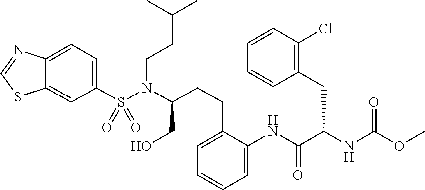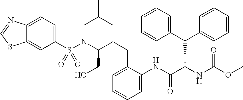 N-(2-{(3S)-3-[(1,3-benzothiazol-6-ylsulfonyl)(2- methylpropyl)amino]-4-hydroxybutyl}phenyl)-Nα- (methoxycarbonyl)-β-phenyl-L-phenylalaninamide