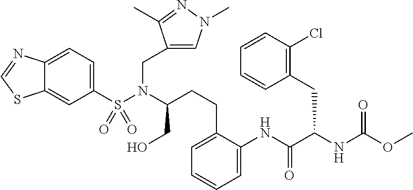 N-[2[(3S)-3-{(1,3-benzothiazol-6-ylsulfonyl)[(4- methylpyrimidin-5-yl)methyl]amino)-4- hydroxybutyl]pyridin-3-yl]-Nα-(methoxycarbonyl)- β-phenyl-L-phenylalaninamide