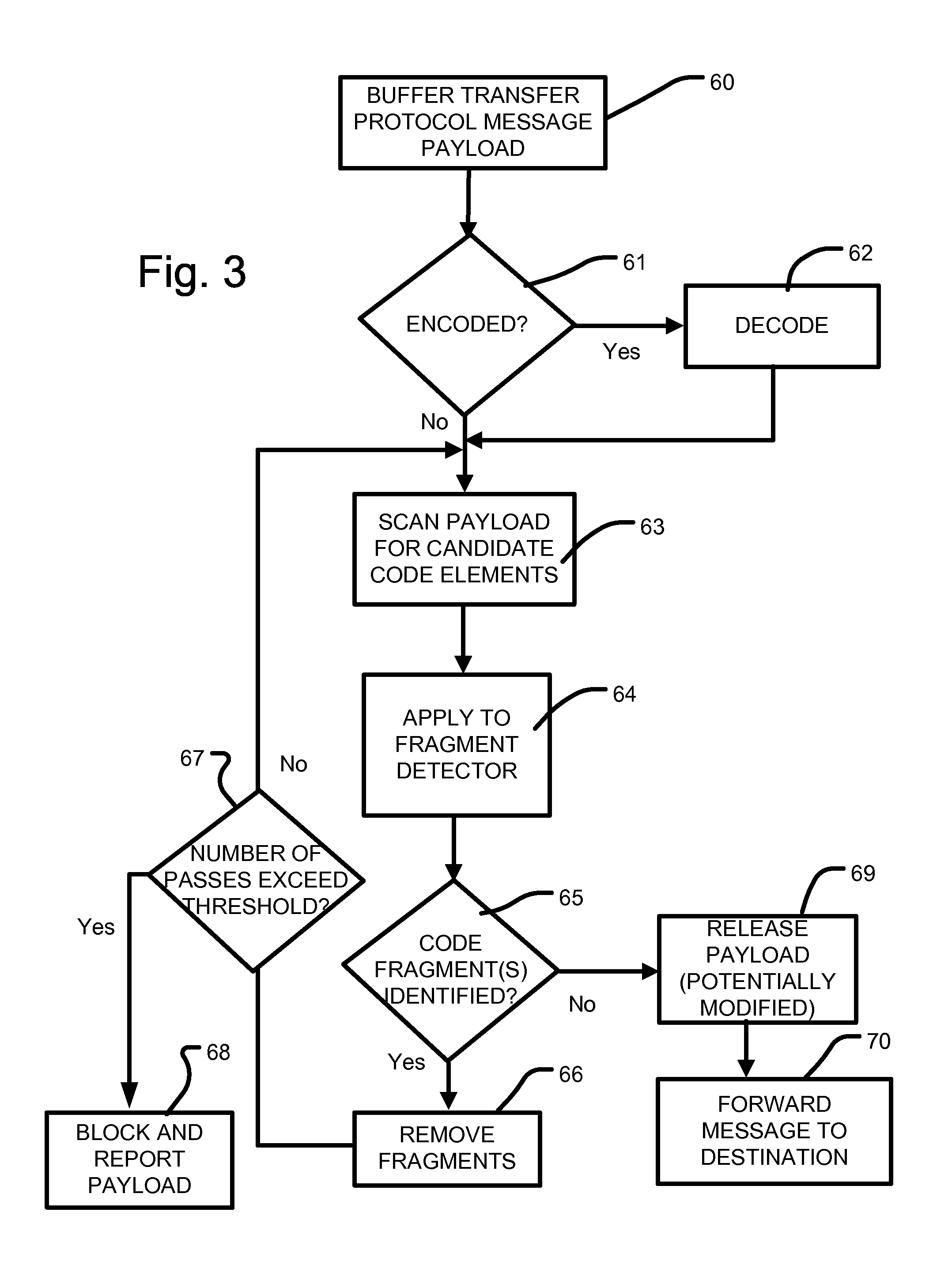 logic to buffer a data flow received at an interface; logic to scan the data flow to detect fragments of well-formed code that consist of incomplete statements or expressions expressed in at least one computer readable programming language including fragments of well-formed code that do not have starting tokens determined before receiving the data flow; logic to process the detected fragments; and logic to forward the data flow from the buffer to a destination. 30. The article of 31. The article of 32. The article of 33. The article of