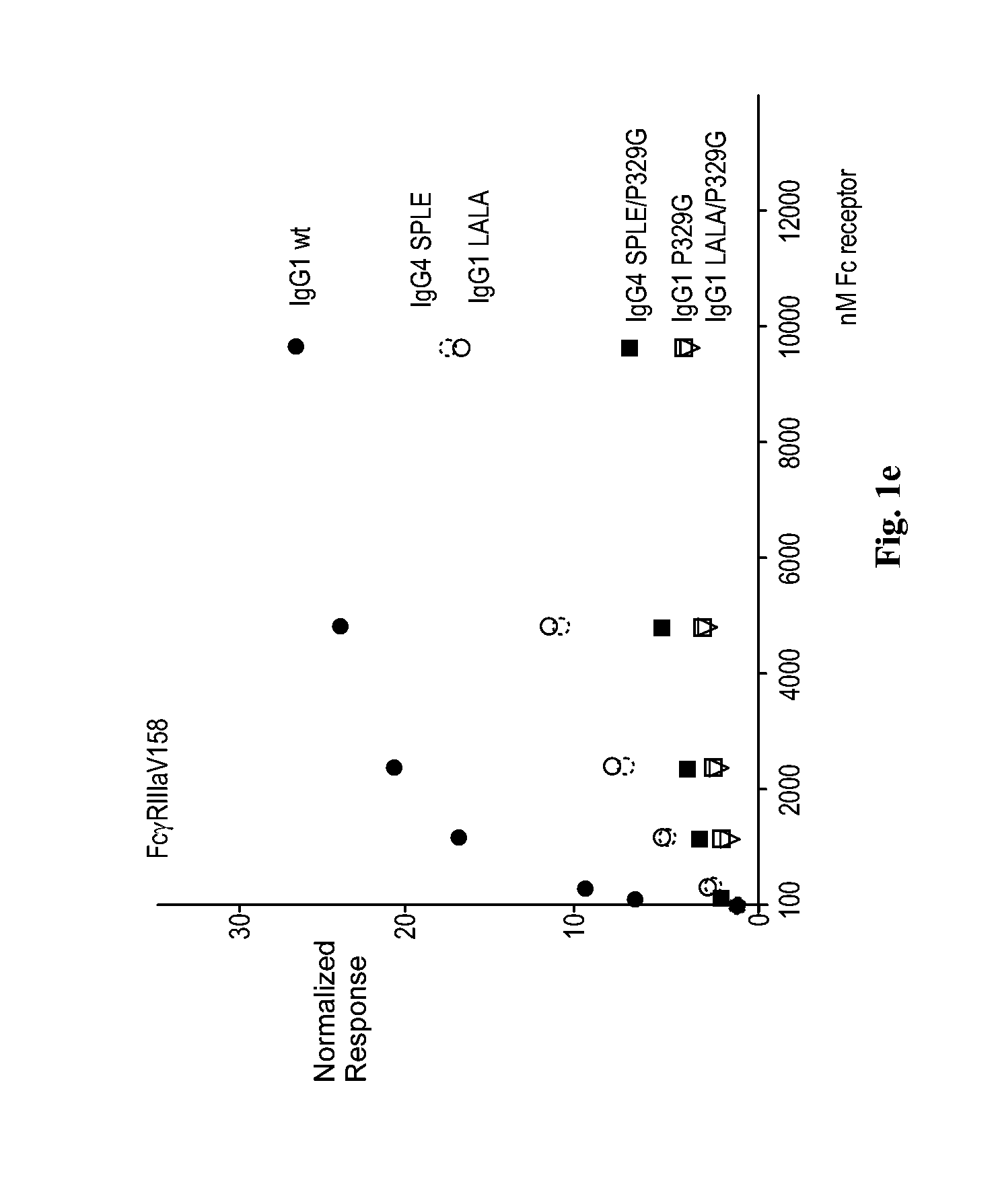 WT IgG1 ++ (5 nM) ++ (2 μM) + (0.7 μM) ++ IgG4 − +/− (10 μM) − (>20 μM) + SPLE IgG1 ++ (6 nM) − (>20 μM) − (>20 μM) − P329G IgG1 ++ (8 nM) + (4.4 μM) + (1.8 μM) + P329A ge IgG1 − − (>2 μM) − (>20 μM) P329G LALA IgG1 ++ (10 nM) − (>20 μM) − (>10 μM) − P329G ge *++ for ge IgG1 30 nM Assay BIAcore BIAcore BIAcore CDC C1q BLT ADCC P329G + −− −− −− −− −− −− P329R n.d. n.d. n.d. n.d. n.d. −− −− LALA − n.d. − − n.d. n.d. −− IgG1_P329G/LALA −− −− −− n.d. n.d. n.d. n.d. IgG4_SPLE −− − −− −− −− n.d. n.d. −− strongly reduced/inactive in contrast to wt, − reduced in contrast to wt, + comparable to wt interaction, n.d. not determined/no result. Affinity to the FcγRI Receptor