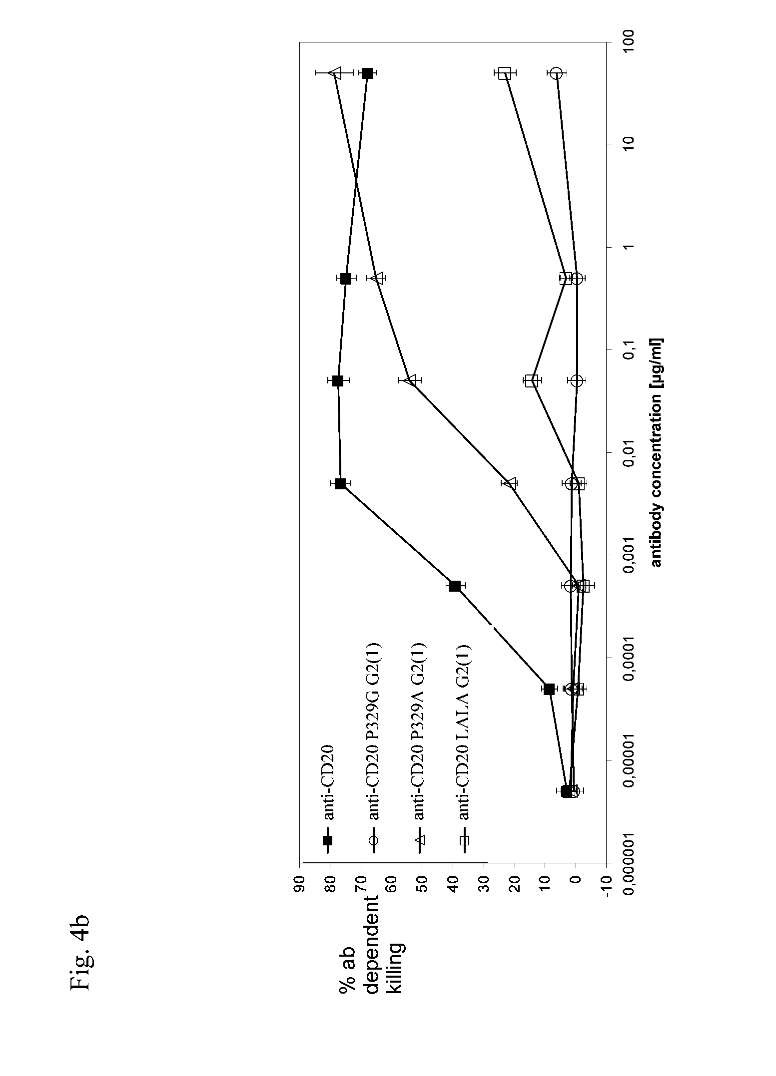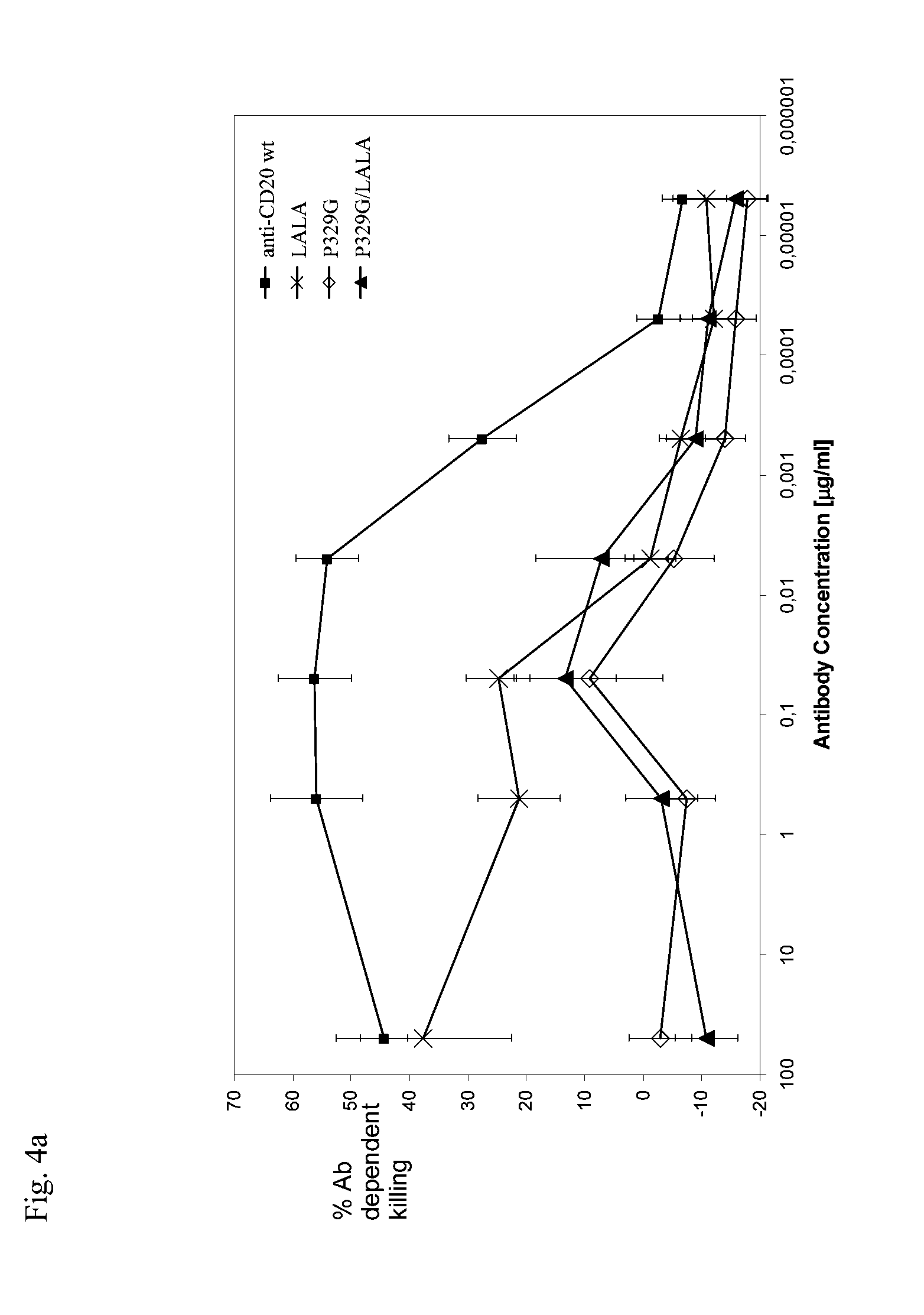 P-Selectin IgG1wt 1.8 anti-CD20 antibody IgG1 wt 2.4 P-Selectin IgG1 P329G 2.7 P-Selectin IgG4 SPLE 3 anti-CD20 antibody IgG1 P329G 5.5 anti-CD20 antibody IgG4 SPLE >10 Example 4