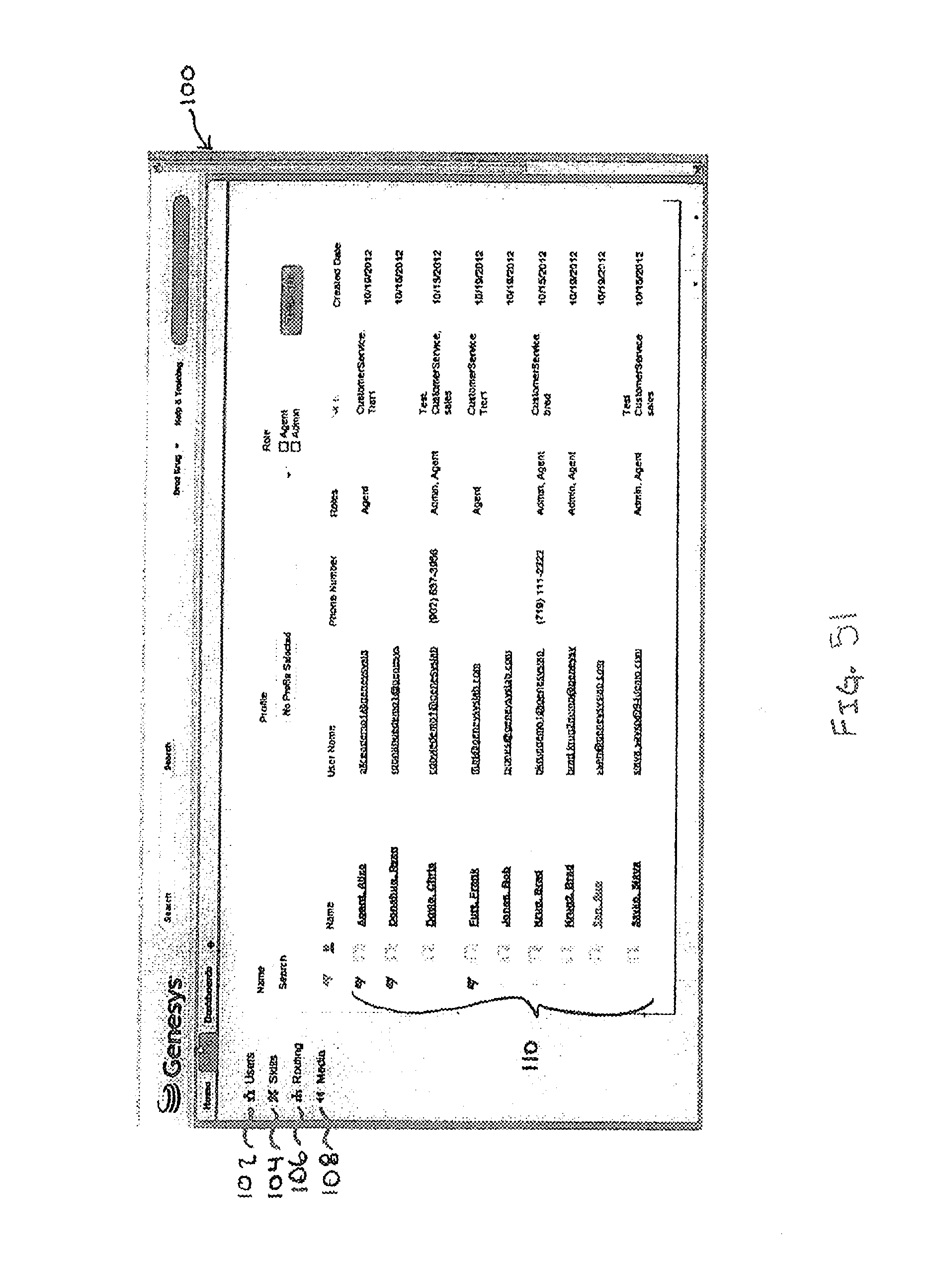 FIG. 57 is a screen shot of a UI page 180 displaying a library of different skill groups 182 available for association with registered users 110 and routing strategies according to one embodiment of the invention. The administrator may create skill groups 182 by selecting the add option 184. When creating skill groups 182, the specialized application 52 may prompt for a skill name and skill description. According to one embodiment, after a skill group 182 is saved in the skill group library, the administrator may assign particular registered users 110 (e.g., agents 11) to the skill group 182 by entering the skill name in the skill field 124 of the particular registered user's profile, and the administrator may enter the skill group 182 in the parameter field for routing to a particular skill group 182 when configuring the routing strategy.