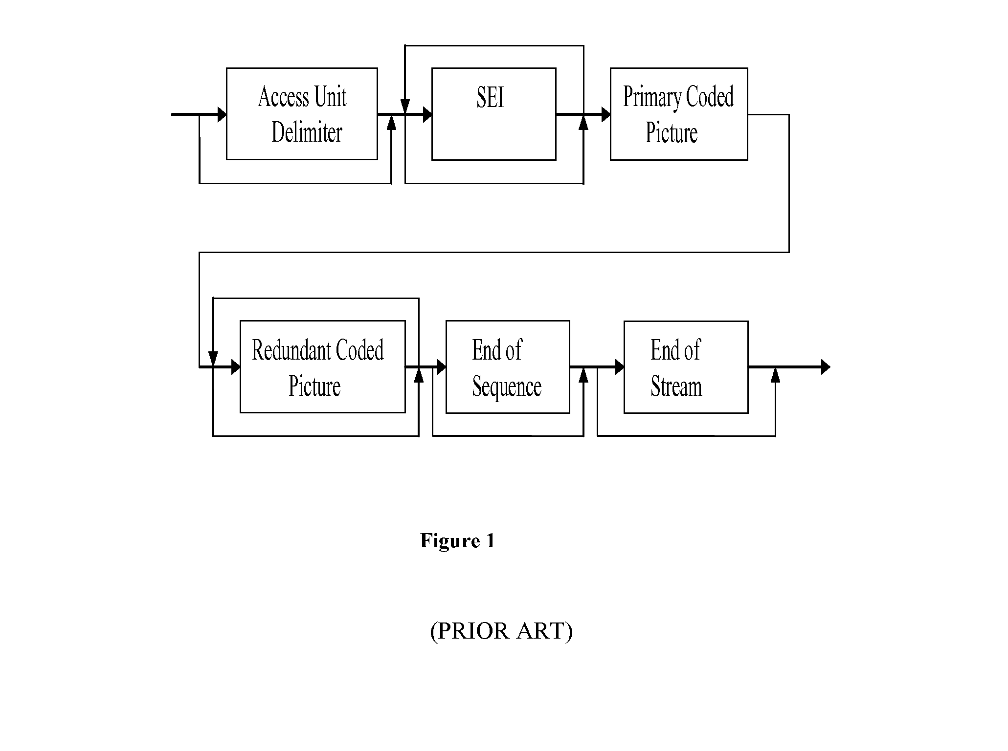 An H.264 video elementary stream can be considered as a coded video sequence. A coded video sequence consists of one or more Access Units. Each Access Unit (AU) is a set of NAL units that always contain exactly one primary coded picture. In addition to the primary coded picture, an AU may also contain one or more redundant coded pictures or other NAL units not containing slices or slice data partitions of a coded picture. The decoding of an AU always results in a decoded picture. The general structure of a conventional access unit is shown in FIG. 1.