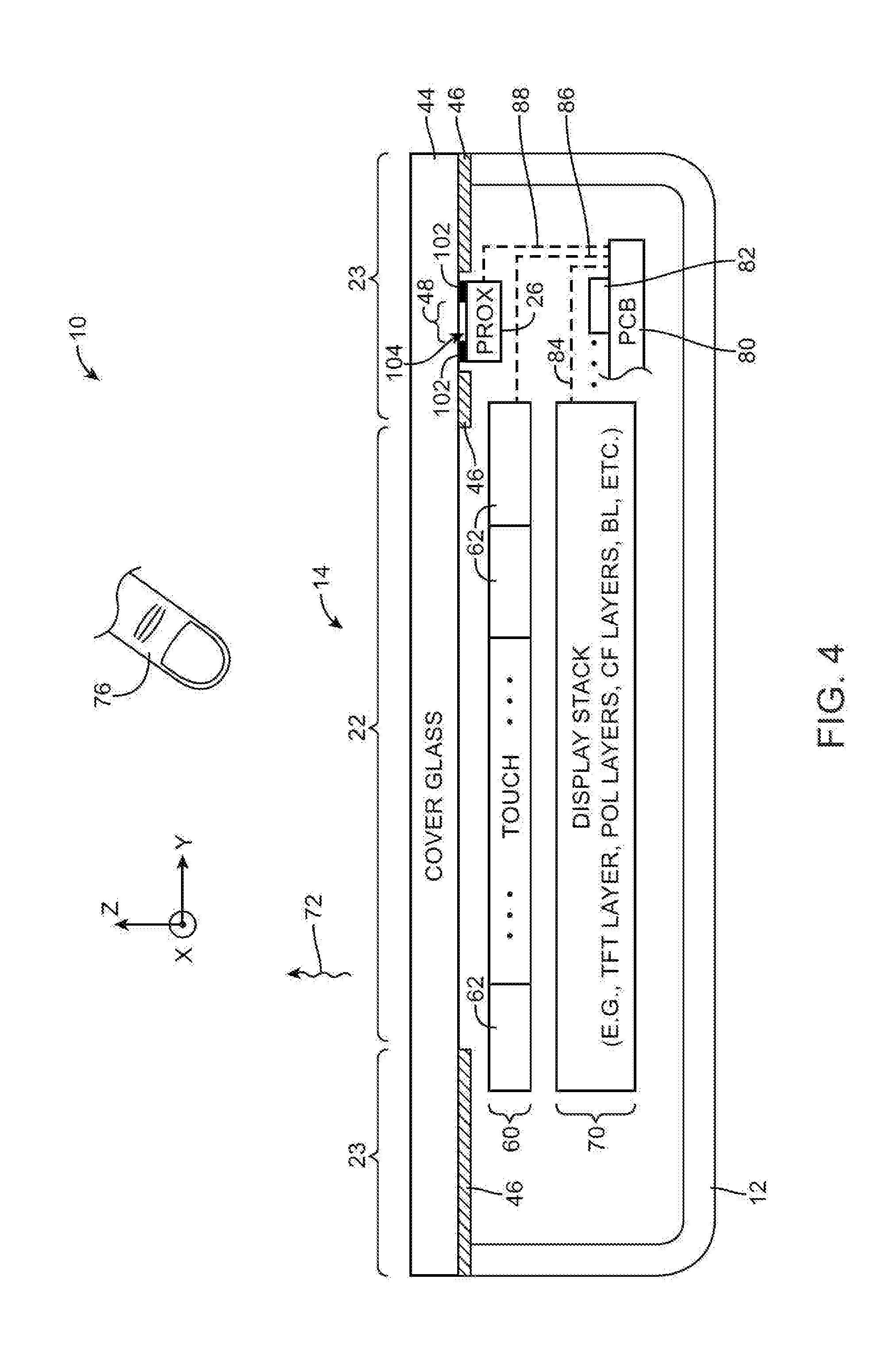 gathering proximity sensor data by emitting first light signals and detecting corresponding reflected first light signals with the proximity sensor; gathering additional data by emitting second light signals with the light source and detecting corresponding reflected second light signals with the proximity sensor; and determining whether an external object is in the vicinity of the electronic device based on the gathered proximity sensor data and the additional data. 19. The method defined in 20. The method defined in 21. The method, defined, in emitting third light signals with the another light source and detecting corresponding reflected third light signals with the proximity sensor, wherein the second and third light signals are guided within the display layer by total internal reflection, wherein the second light signals strike the surface of the display layer at a first angle of incidence, and wherein the third light signals strike the surface of the display layer at a second angle of incidence that is different than the first angle of incidence.