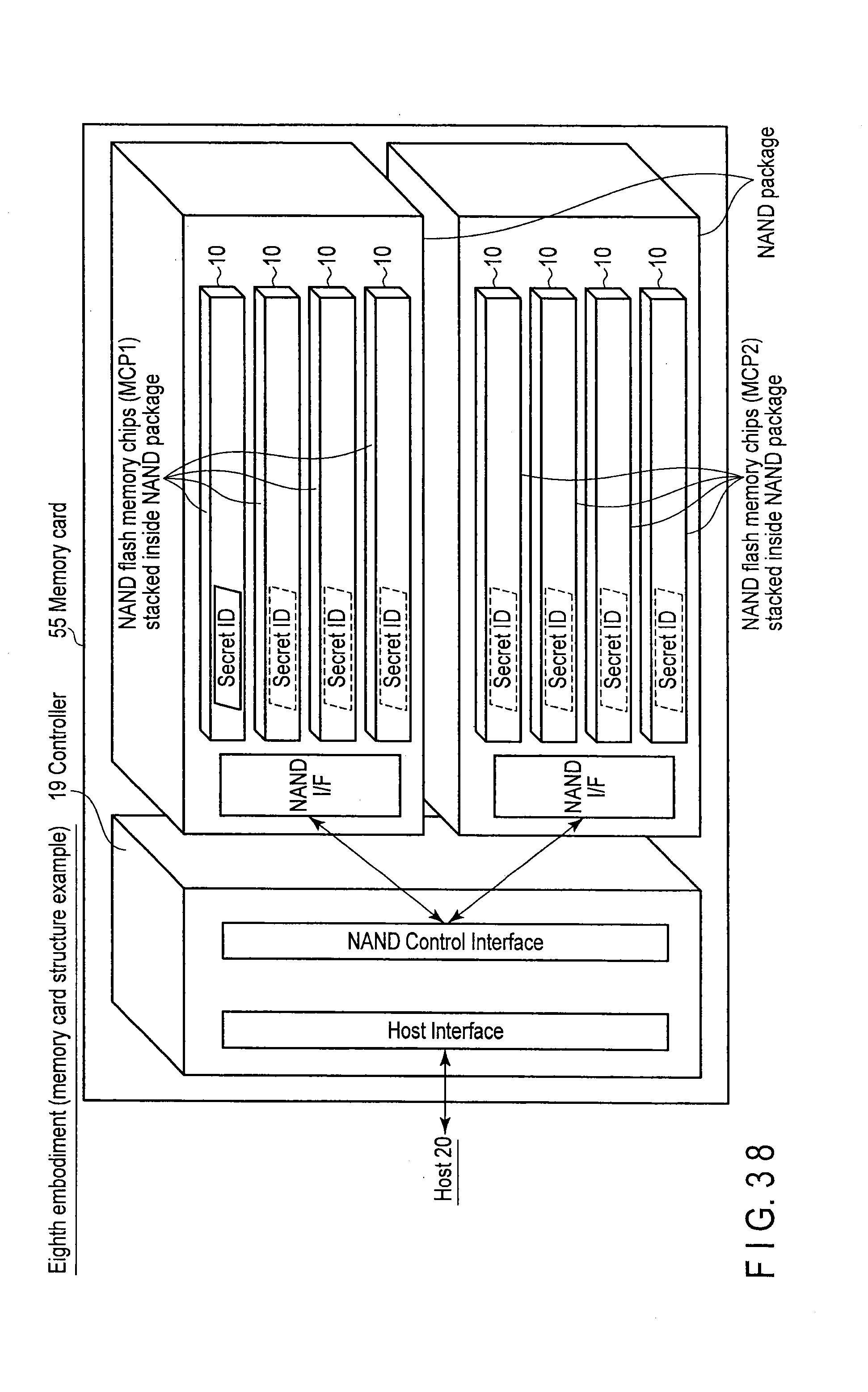 The present embodiment is an example of using the authentication function and the function to be authenticated included in the NAND flash memory 10 in the memory card 55 via the card socket 550A, but is also applicable to a configuration in which the NAND packages are directly embedded in the HDD shown in FIG. 40 and the HDD directly control the NAND packages. In this case, the memory card may be replaced by the NAND package.