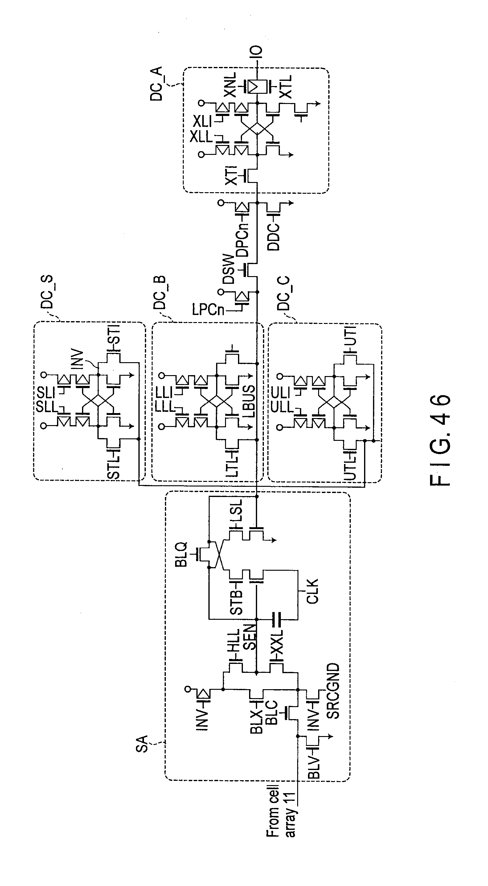 FIG. 46 shows an equivalent circuit example of a sense amplifier 77 and data caches 12 in FIG. 45.