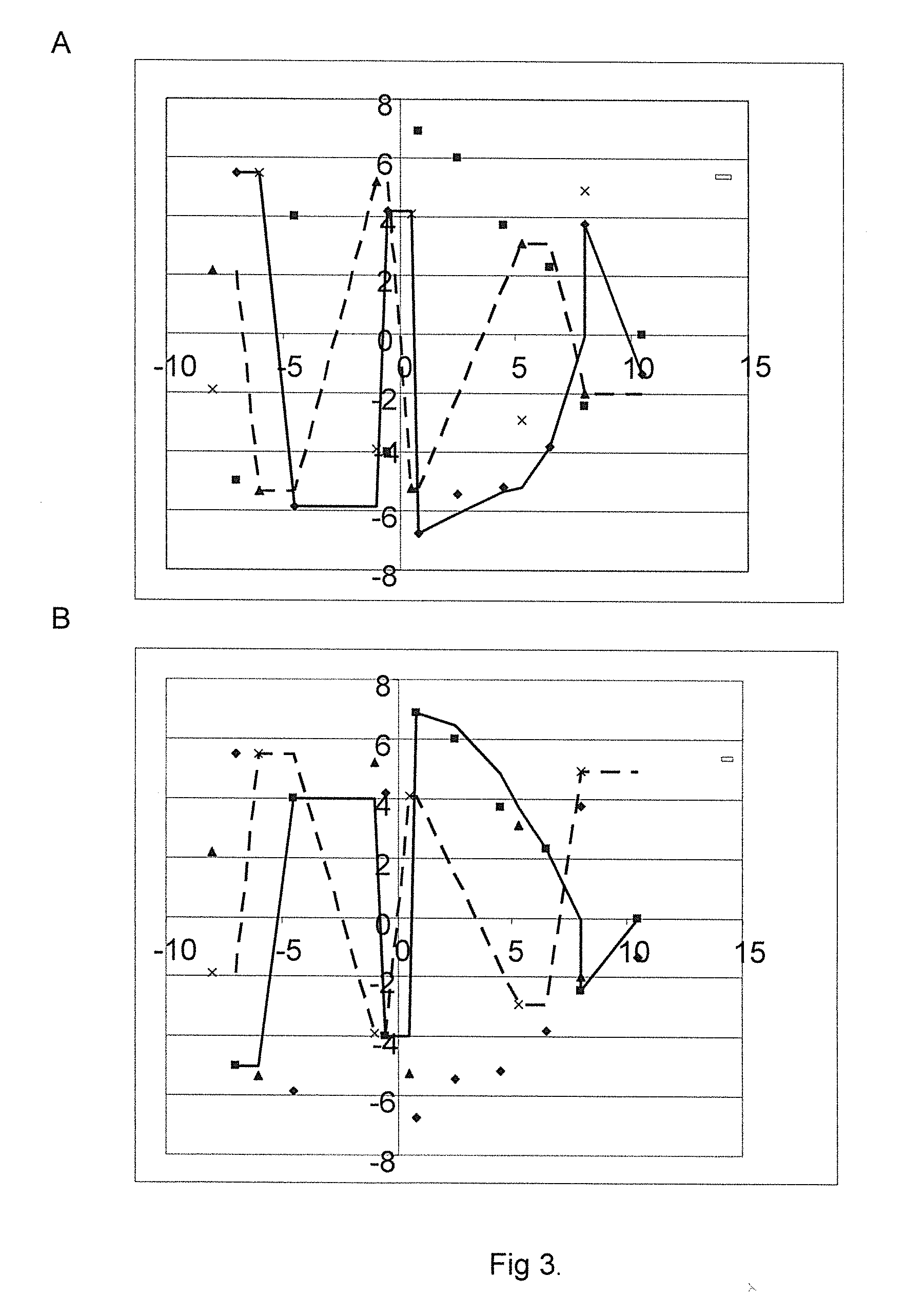 This dose is intended to be dissolved in approximately 300 of liquid such as water before ingestion. Fibres can be glucomannan, galactomannan, alginate, pectin, cellulose, chitosan, gellan gum. Preferred is a fibre of glucomannan, galactomannan, alginate, pectin, or the fibres may be a combination of the mentioned fibre. Up to about 10% of the fibres can be cellulose or chitosan in order to improve rehydration properties. Whey may be obtained from bovine, ovine or caprine sources. Preparation of the whey, and selection of the source can be used to increase/manipulate the amount/quality of the active principle (GMP). The active principle in plant (e.g. soy, potato) protein hydrolysates are proteinase inhibitors (e.g. soybean trypsin inhibitor and/or PI2 from potato). The content/quality of inhibitor can be manipulated by source and preparation Chilli may be Pepper may be Mint oil means oil prepared from the leaves of A number of herbs can be used as thermogens and/or side effect remover. Chilli, pepper and ginger as mentioned above may be substituted by any other thermogen plant or compound mentioned herein. Mint oil may be substituted by any extract e.g. oil extract or plant part described herein as a side effect remover. A dietary supplement according to the description herein has been tested with human individuals. Formulation: 600 mg Na-alginate and 100 mg whey was dissolved in 300 ml of water. Powdered chili corresponding to 2.5 mg capsaicin and 200 μl mint oil were encapsulated in 1.5 ml of freeze dried Ca-alginate beads. One dose consisted of the amount just described. Administration The preparation was taken 5-10 min. before lunch. The beads containing the chilli and mint oil were swallowed during drinking of the alginate/whey solution. After ingestion of the preparation individuals were allowed to eat unrestricted. Two adult individuals—one female and one male of normal weight took one daily dose in connection with lunch for a period of 4 days. The two subjects registered satiety/hunger and caloric intake for these 4 days and for 4 days when not ingesting the product. Scoring of Results For scoring of the results relating to hunger/satiety a 16 cm visual assessment scale was used when the dairy supplement was ingested. Two different questions were asked for assessment of hunger while one scale was used for assessment of satiety. The questions were: