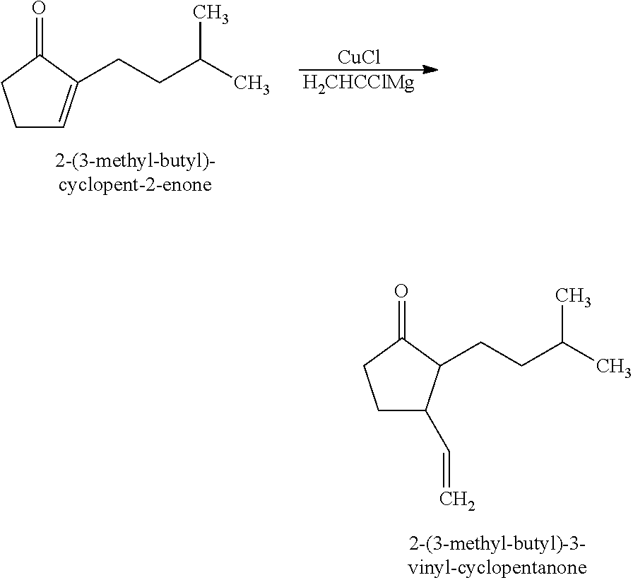 4 2-(3-methyl-butyl)-3-vinyl- cyclopentanonelactonic, peach, buttery, floral, fruity, marigold, green, herbaceous, and minty characters